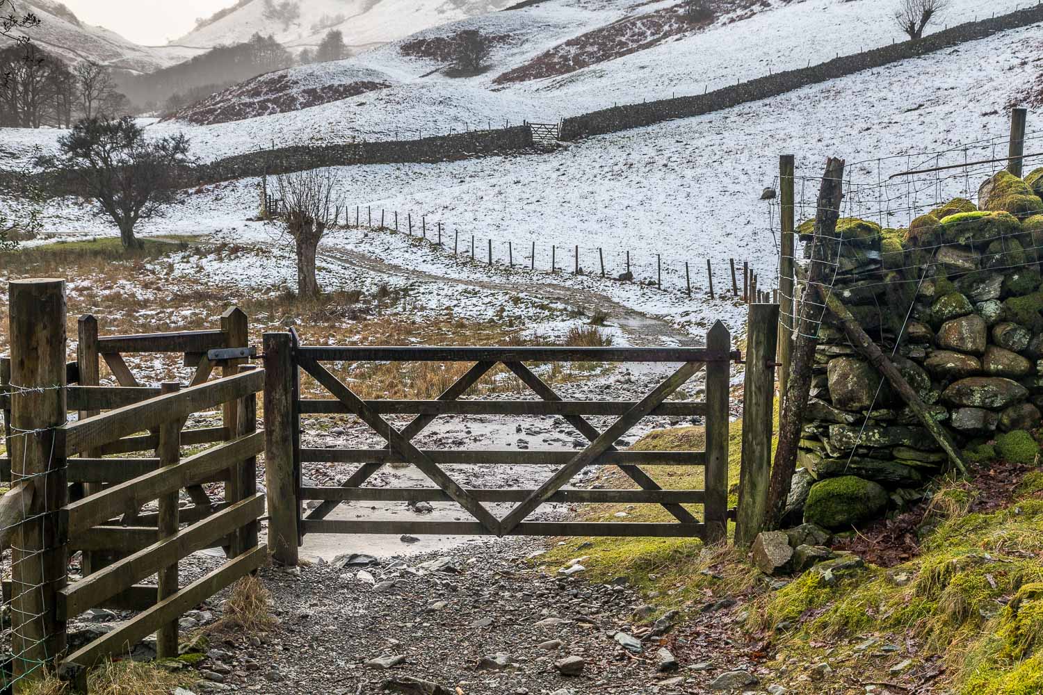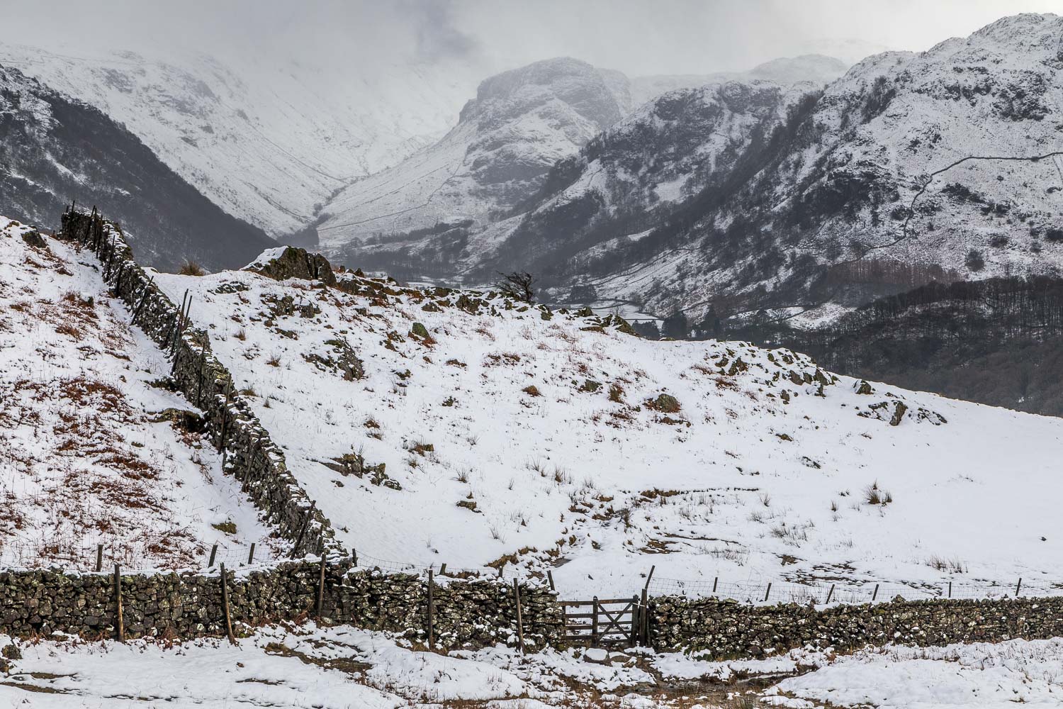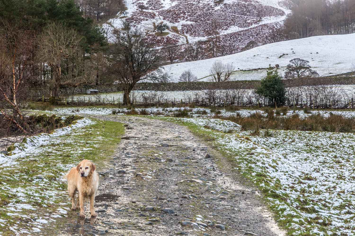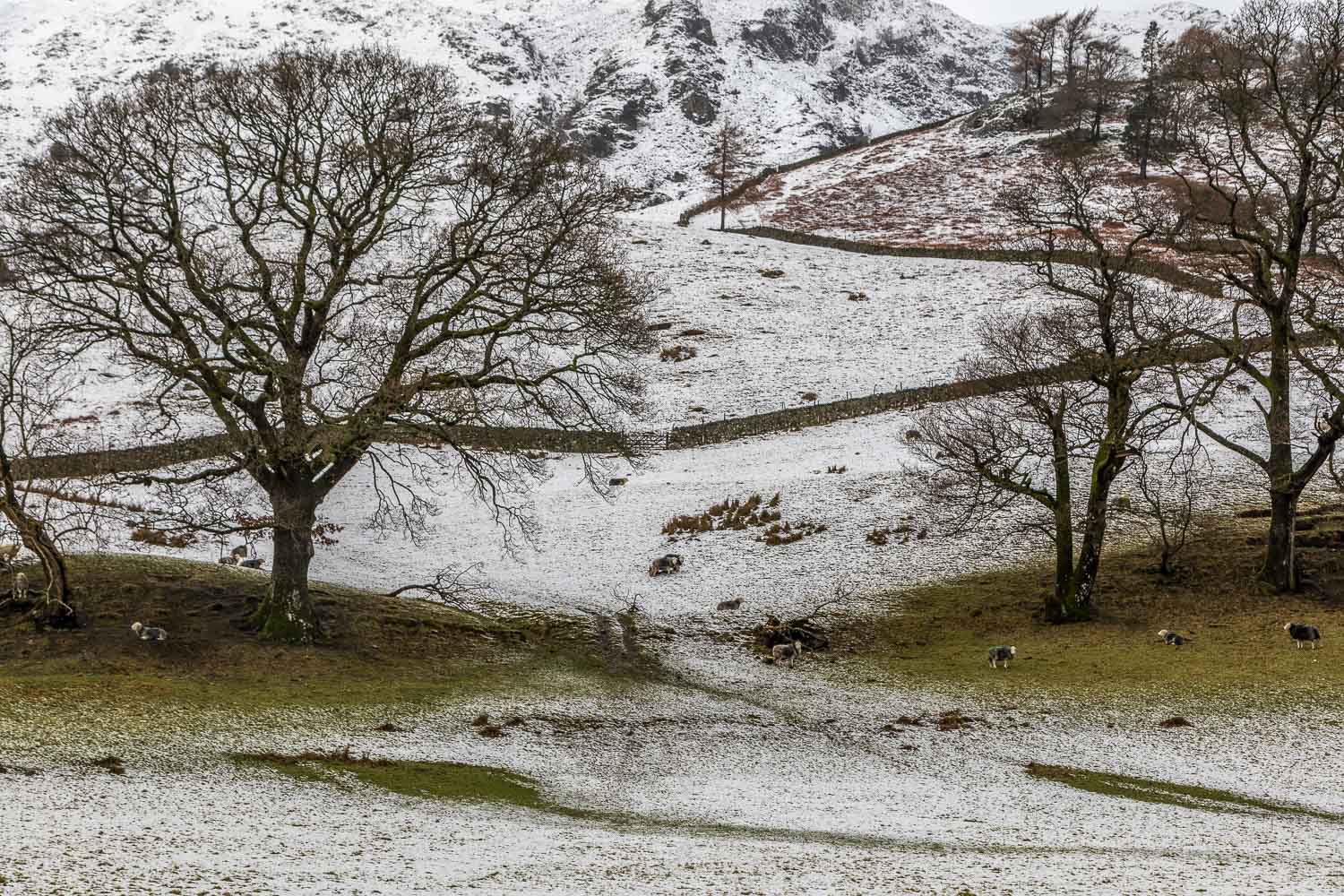 The weather looked quite promising as I set off for Rosthwaite. An overnight dusting of snow showed the Borrowdale fells at their best and I was looking forward to another walk in this most beautiful of valleys. On arrival I parked in a deserted National Trust car park and walked past Yew Tree Farm along a track which is part of the Cumbria Way. After walking beside the River Derwent for a short distance I crossed New Bridge and left the Cumbria Way to climb up Lingy Bank. Last night’s snow made the going quite slippery at times