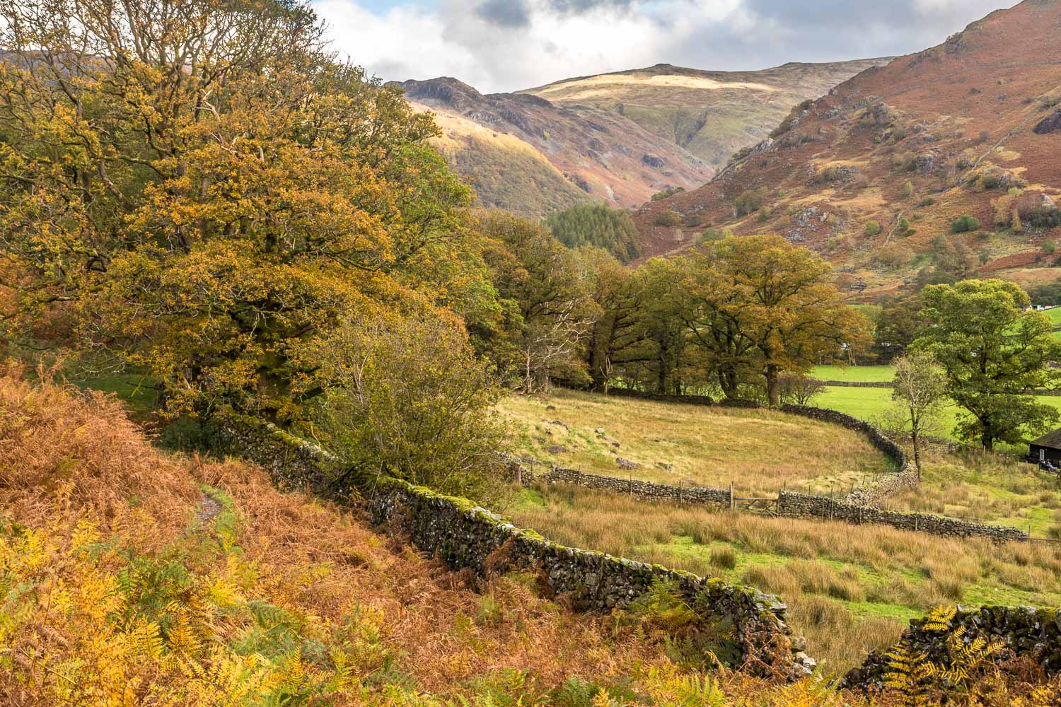 Just as forecast it rained all morning, but by lunchtime there were signs of clearing skies, so there was just enough time for a short afternoon walk. We could think of nowhere better than Borrowdale, which many would contend is the most beautiful valley in the Lake District. It’s hard to argue with this, especially in autumn when the ancient deciduous woodland is seen at its best