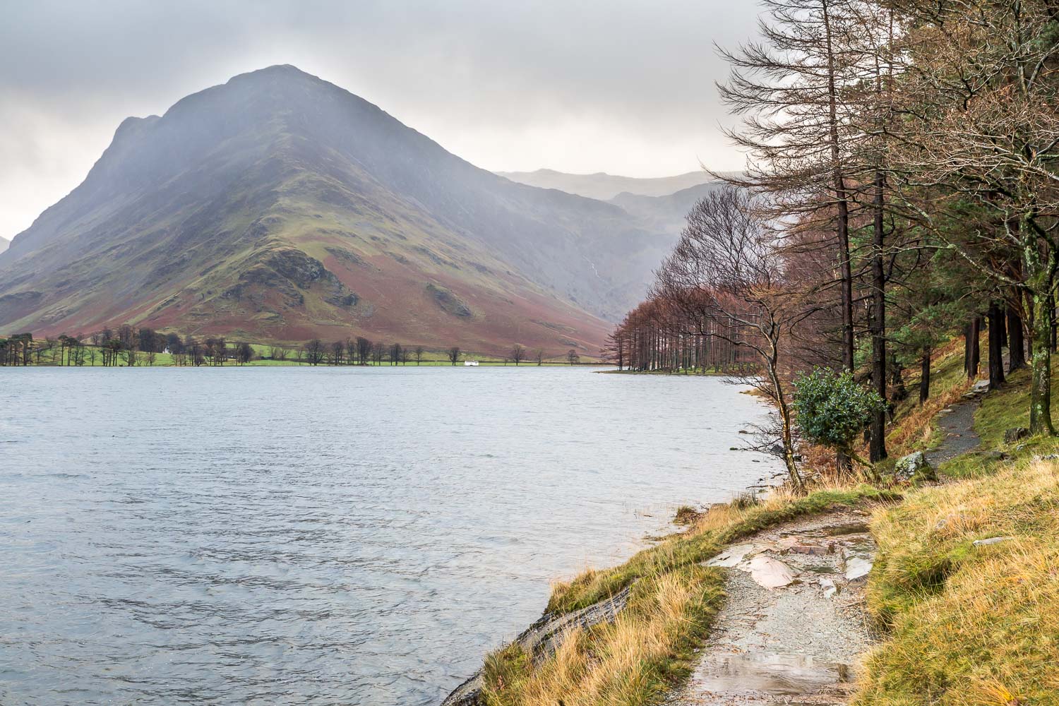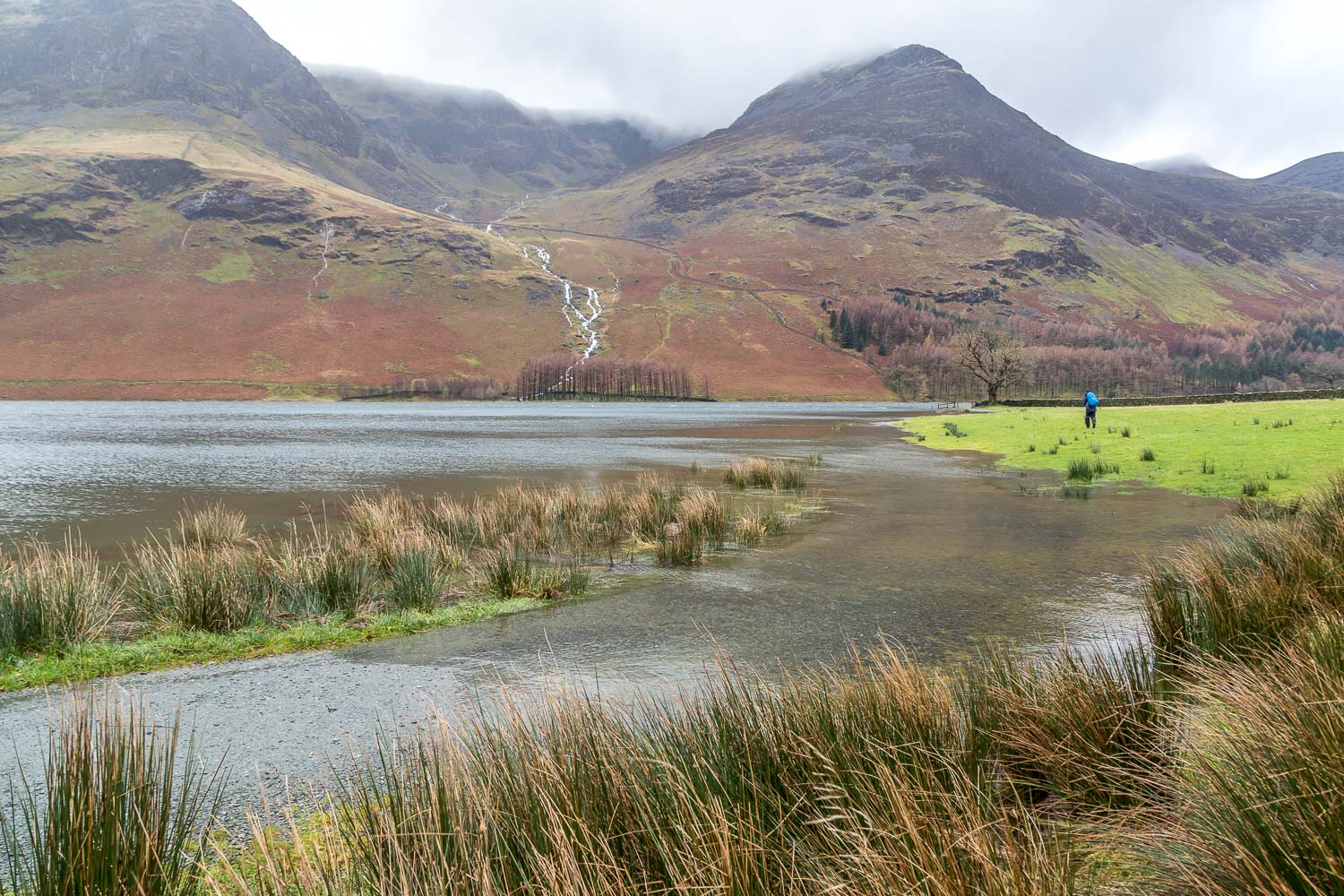 For the last 24 hours there had been torrential and incessant rain in the Lake District, to the extent that streams and rivers burst their banks in some places, leading to localised flooding. At last there were some signs of the rain abating and a walk was on the cards. Frequent showers and high winds dictated a low level route and a circuit of Buttermere would fit the bill perfectly