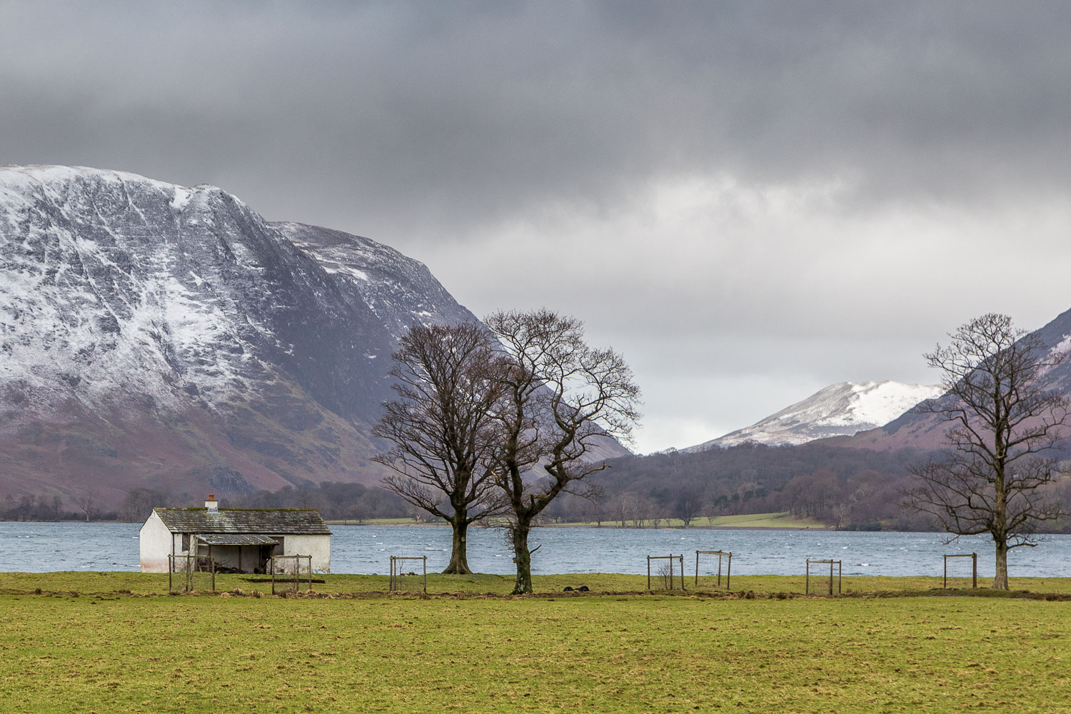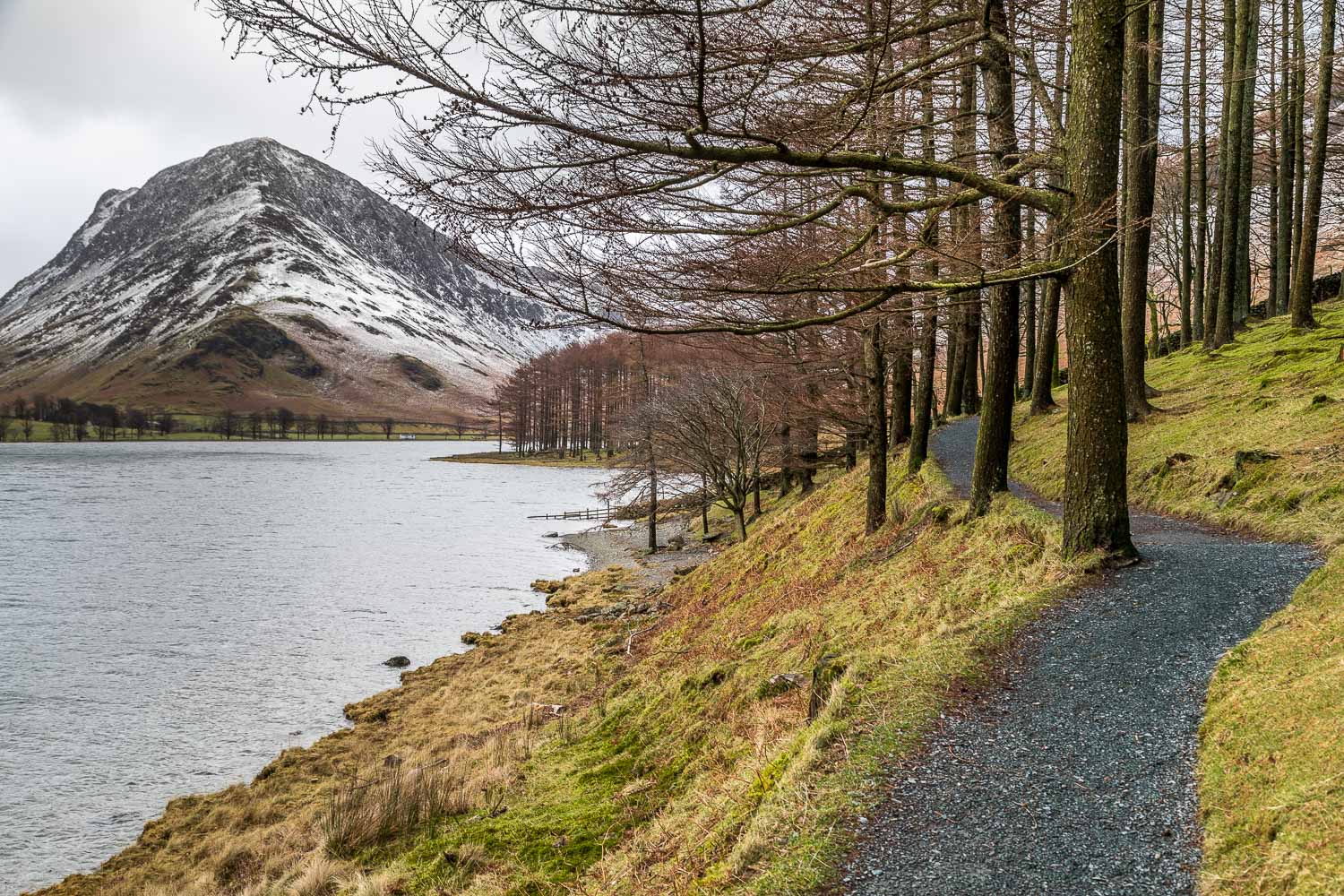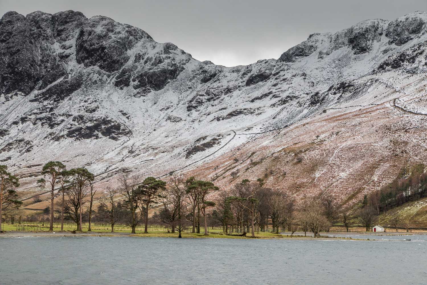 Overnight snow made road conditions difficult and in addition the Whinlatter Pass was closed today – not on account of the snow, but because badgers had undermined it. I therefore decided on a local walk, and Buttermere would fit the bill perfectly. This walk can be too popular at times but today the crowds would be deterred by the conditions, and this proved to be the case as I parked in an almost empty car park at Long How, just outside Buttermere village