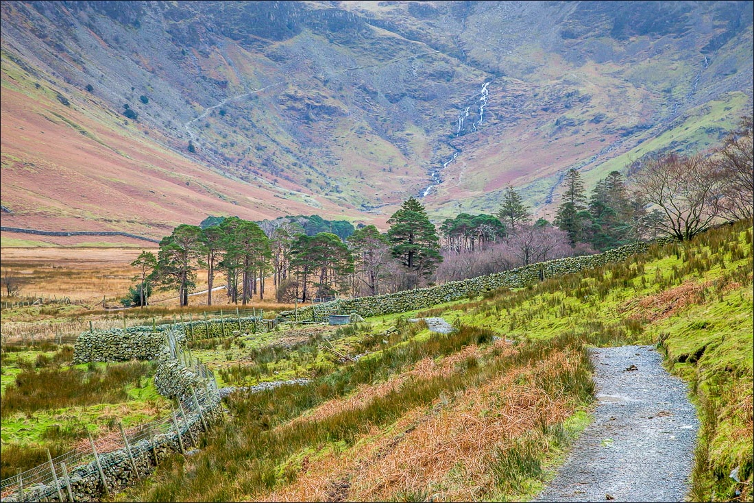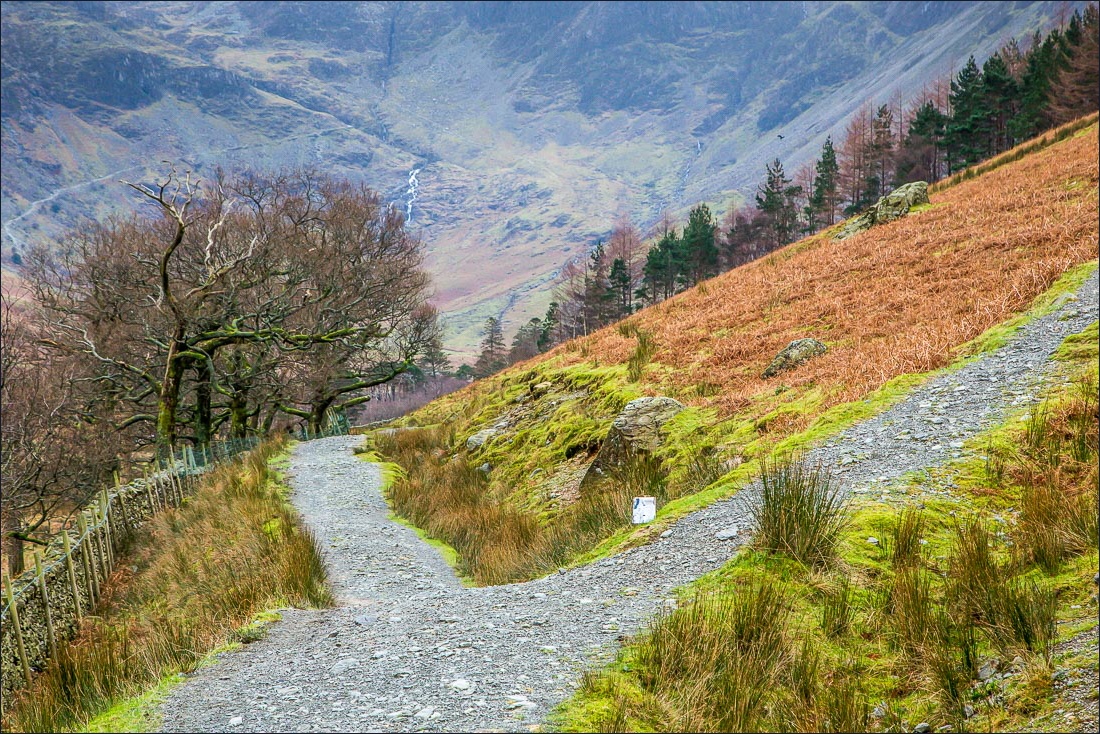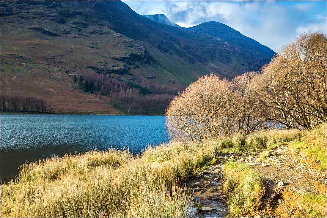 We parked in the National Trust car park at Long How. Instead of walking straight into Buttermere vilage as normal, we made a brief diversion through the woods at Long How, almost as far as the head of Crummock Water, before turning back to cross the land between the two lakes. This area had been underwater last month following the recent floods. There was plenty of debris around and the ground was still sodden but perfectly walkable