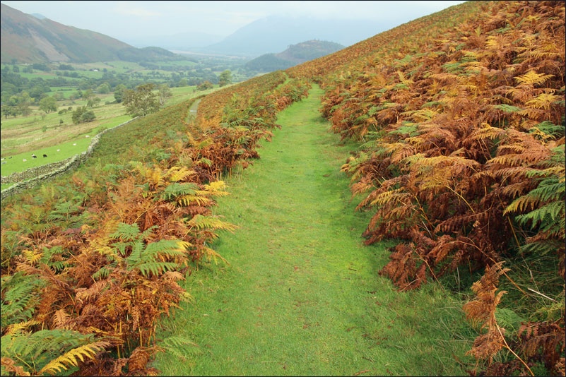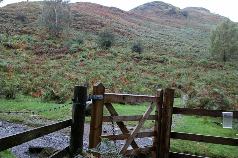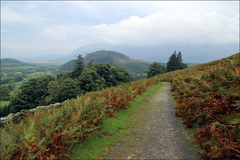 It was another rainy start as I left Nichol End Marine to walk along the Cumbria Way, heading south along the shore of Derwent Water