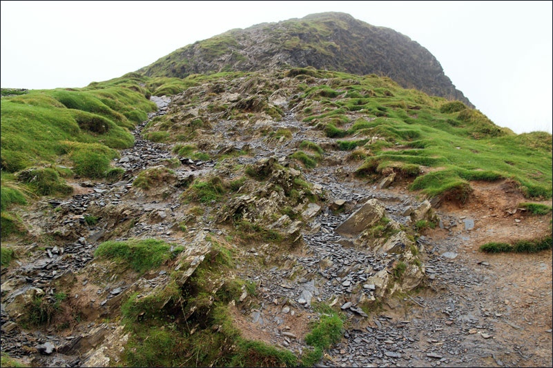 There are two of three scrambly sections up the delightful ridge. Hands are needed in places and I took extra care as the wet rock was very slippery
