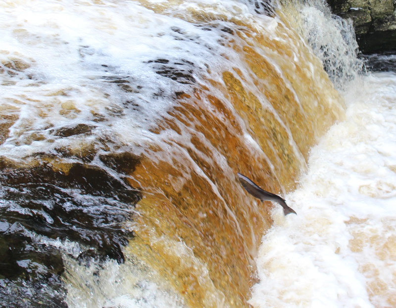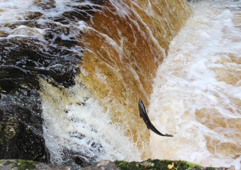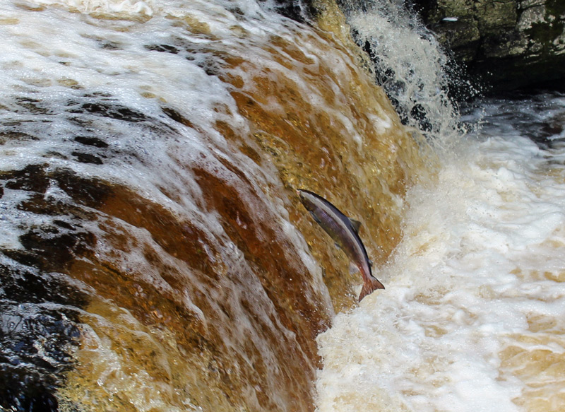 On the way to the start point Austwick I took a diversion to nearby Stainforth Force, having been inspired by the sight of leaping salmon there on Sunday’s walk. It was a good decision as the salmon were out in force, and I had lots of close sightings of this wonderful spectacle. I could have stayed there all day