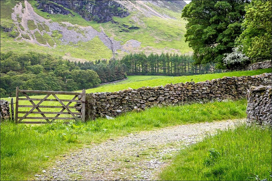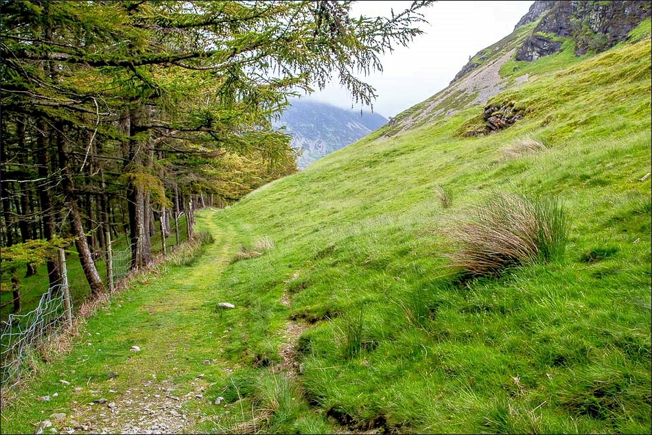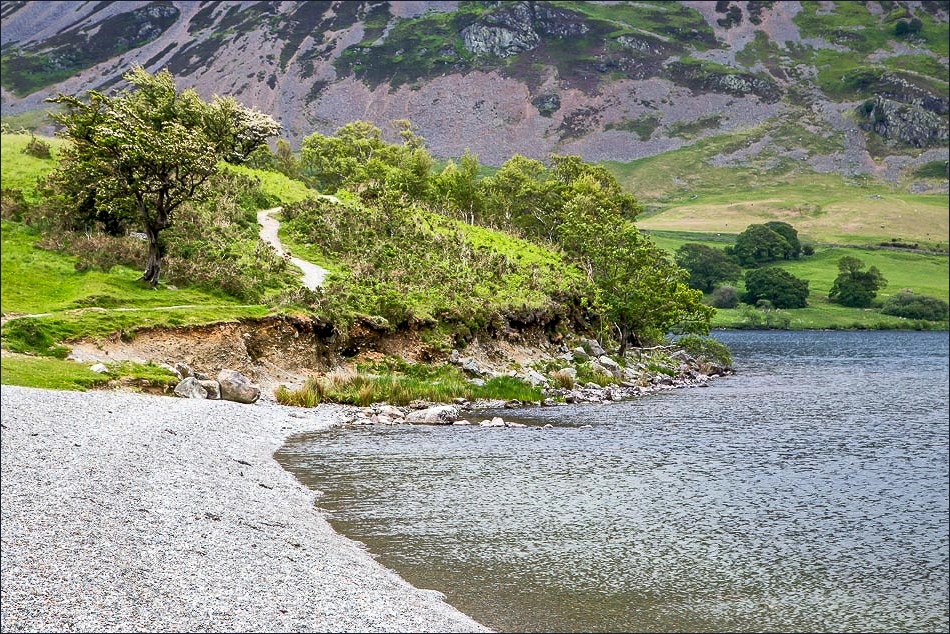 I parked in the small car park at Church Bridge near the famous Kirkstile Inn and walked away from the Inn past Kirkgate Farm. I carried on past the farm and left the track near the foot of Mellbreak, walking above Flass Wood. The wood, and its neighbour Green Wood, are well stocked with oak trees but they always seem to look untidy – there are fallen branches and skeletons of trees all over the place, no doubt on account of ferocious winds blowing along Crummock Water
