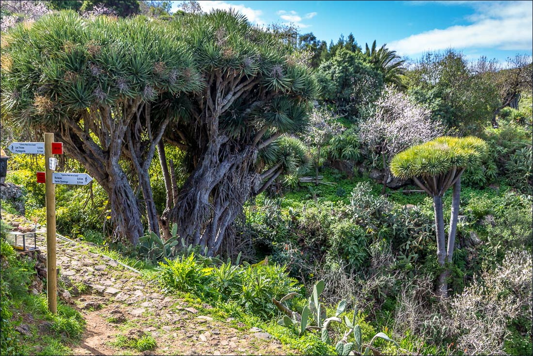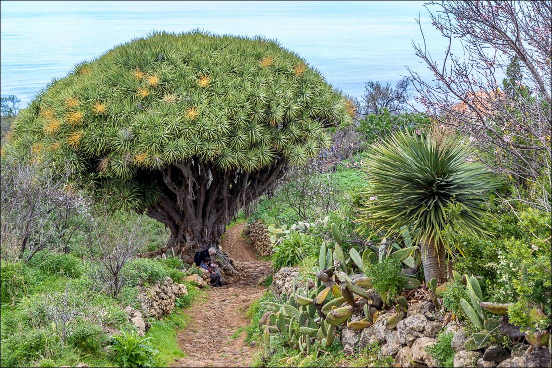 We parked in the sleepy village of Las Tricias and walked downhill towards the sea following the well named ‘Dream Paths’ which took us through almond orchards, gardens and idyllic farmland. Along the way we passed by some magnificent dragon trees, which are amongst the finest on the island
