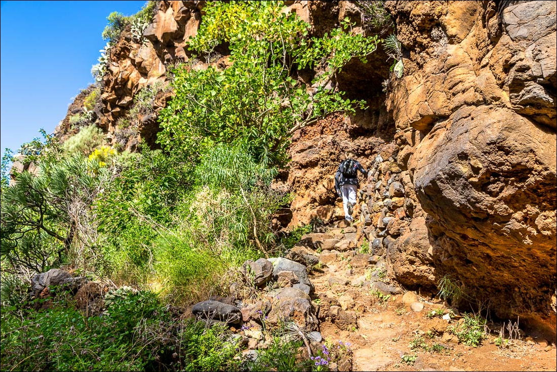Eventually we arrived at the barranco and crossed this via some narrow and rocky paths, passing by the caves, some of which are inhabited, known as the Cuevas de Buracas