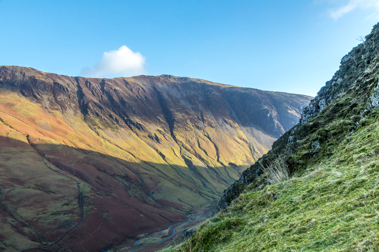 When I reached the old slate mining works I joined the rocky path beside Warnscale Beck which took me down to Warnscale Bottom. There were more glorious views over Buttermere as I made the descent, which is at an easy gradient throughout. Having reached valley level, it was a stroll back along the path to Gatesgarth to complete a short but superb fell walk