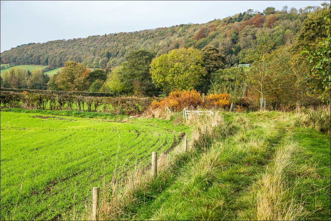 At the end of the woods there’s a choice of paths, one higher and the other lower and closer to the Derwent. Whichever one is chosen there is some boggy ground to negotiate and walking boots are bound to become clogged with thick mud at any time of year. I took the lower path along the valley today, eventually arriving at the quiet village of Wrench Green