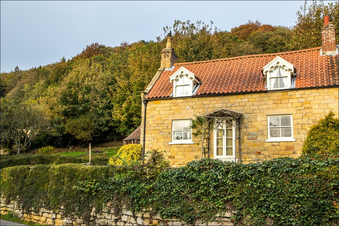 When I arrived at the footbridge I decided to make a quick ‘there and back’ diversion along the riverbank to photograph the attractive old stone barns opposite the cottages in Hackness. After returning to the bridge I walked through Hackness to Derwent View, which marked the end of the walk for me – anyone not staying at the cottage could park elsewhere in the village