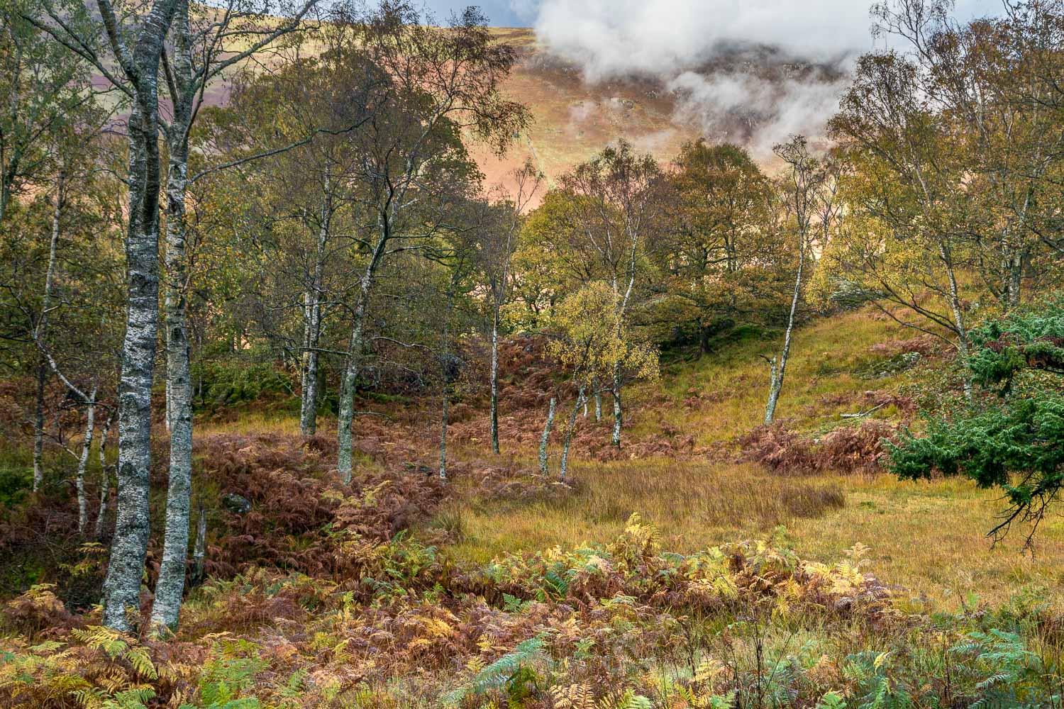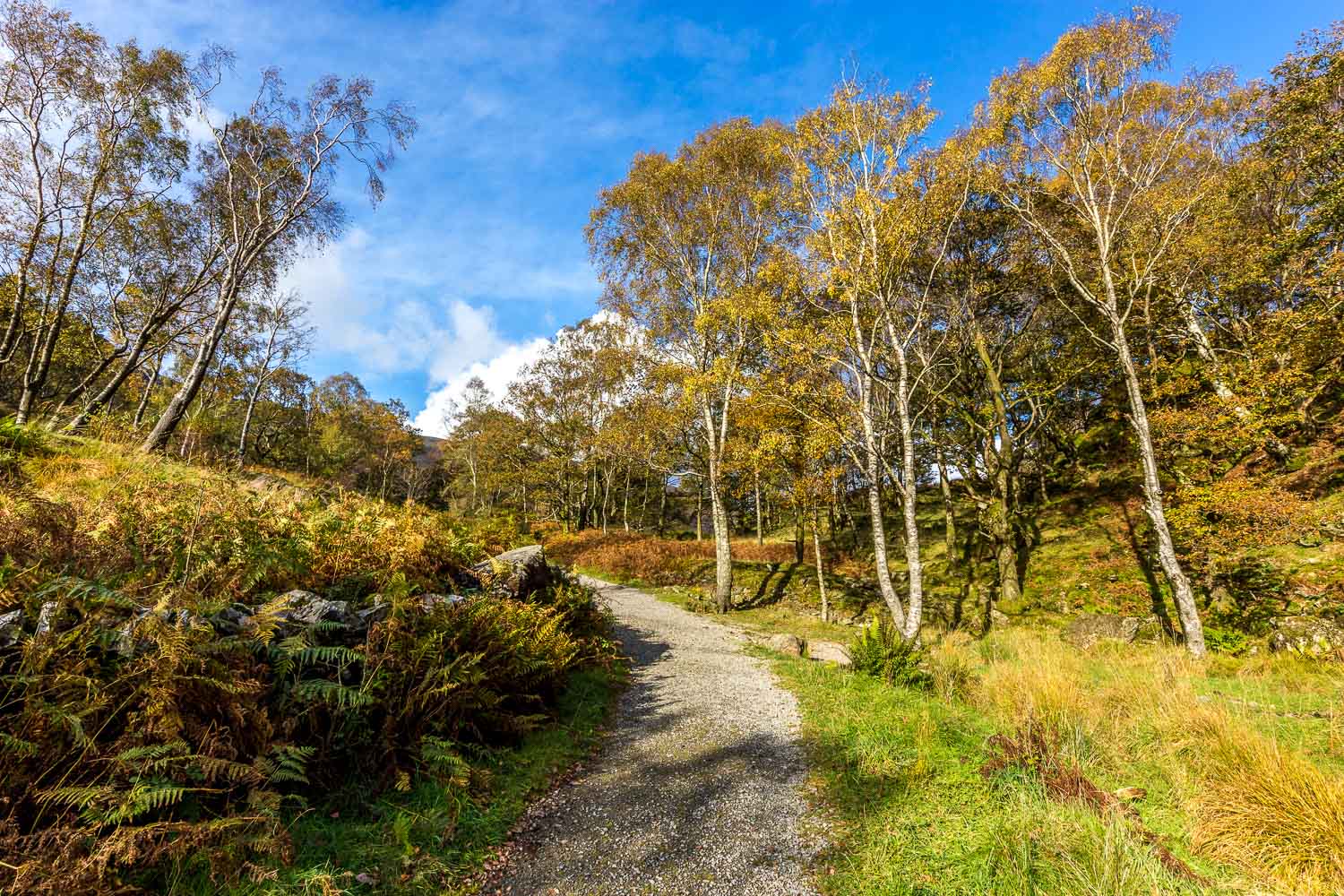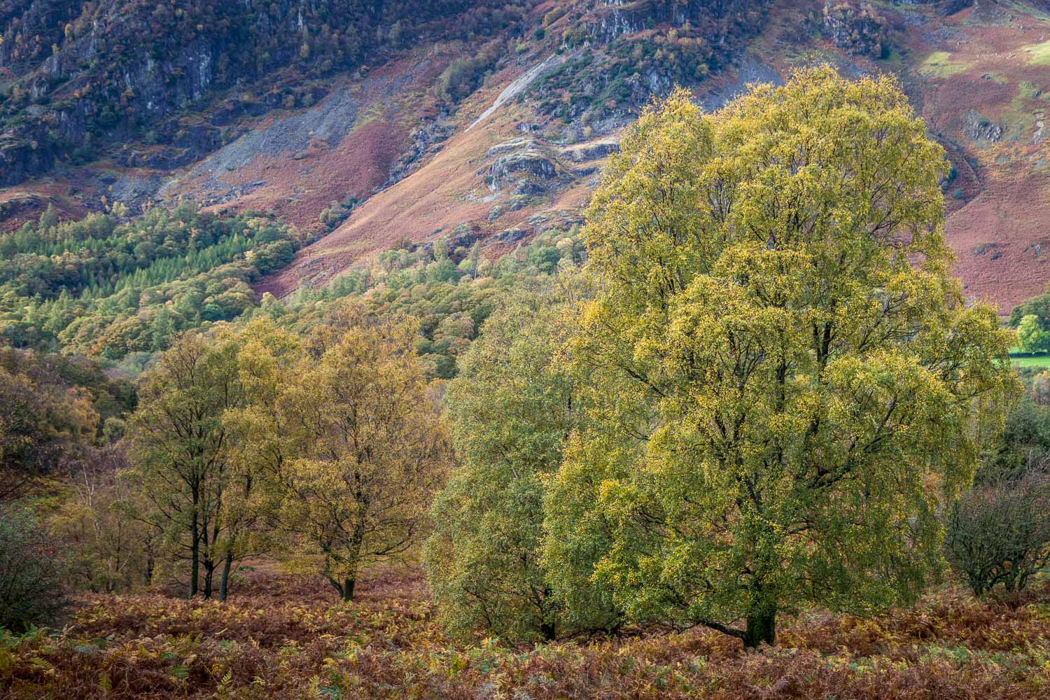 Autumn is well underway, and I wanted to visit an area where there is good woodland colour at this time of the year. Another visit to Borrowdale, home to some ancient deciduous woods, would fit the bill perfectly. I parked in the National Trust Bowderstone car park and from here followed a path which goes through beautiful woodland, gradually curving around the steep crags above – a direct assault on the fell would be impossible for ordinary walkers