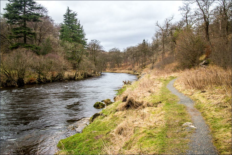There’s a lot of birdlife to be seen on this walk, both along the river and in the wood – unfortunately none of it was on show today, probably because of the very high winds