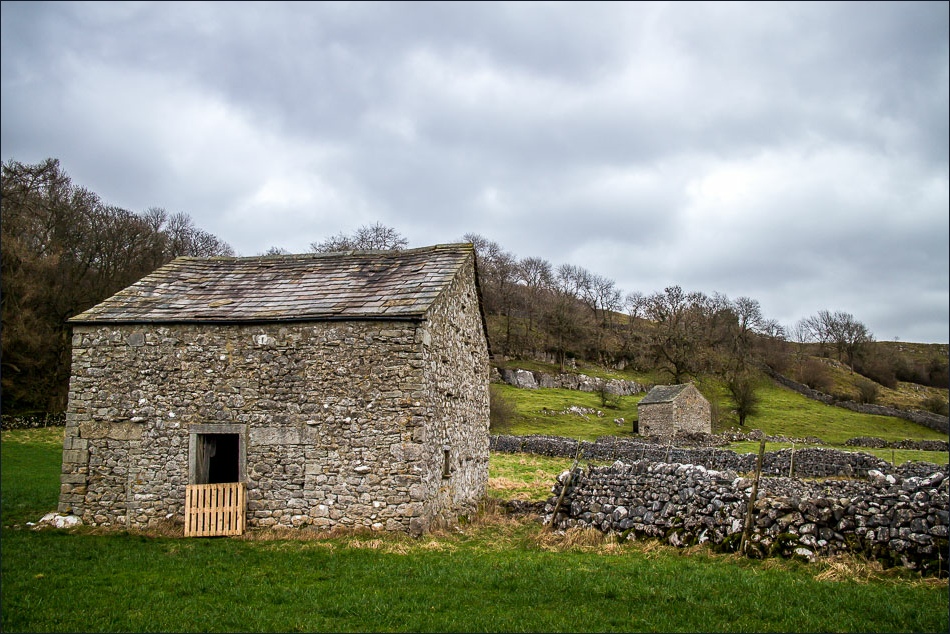 After walking through the woodland, there was a short attractive section through typical Dales countryside with dry stone walls and old barns, before I arrived back in Grassington. The weather was dull and overcast – not ideal for photography – but at least the rain held off until I was back in the car