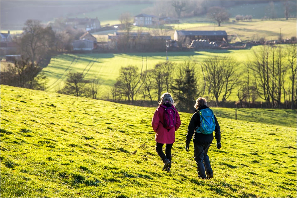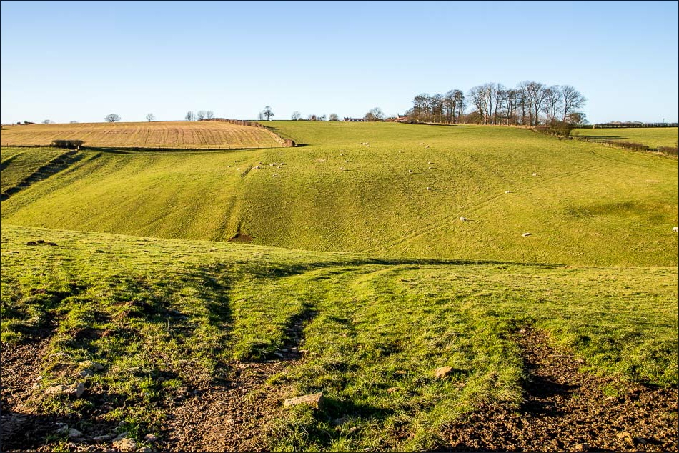 We followed a path through the woods above the cottage, and then descended back into the village in order to climb up through Hilda Wood to the highest point of our walk. The tops in these parts are like table tops, quite unlike those in lakeland, and comprise of flat agricultural land, but they nevertheless make for very enjoyable walking