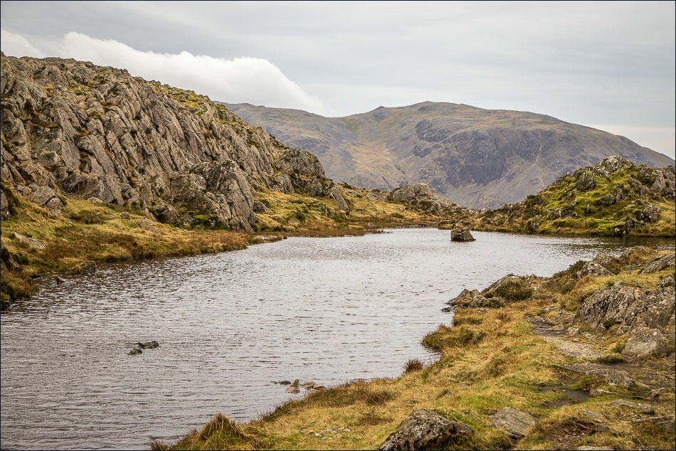 The light was as dull as ditchwater and the normally sublime views from the summit were not at their best, so without lingering we made our way across the complicated knobbly top of Haystacks