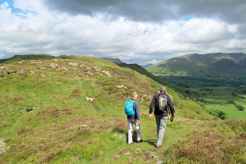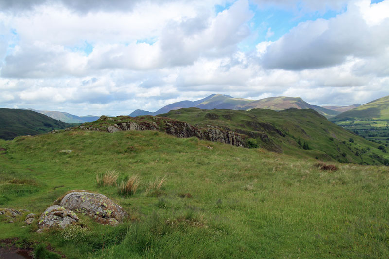 There were lots of ups and downs along the long ridge. After about 1.5 miles, the summit of High Rigg was finally reached, from where there were lovely views, particularly of Blencathra
