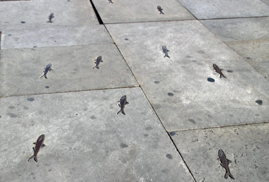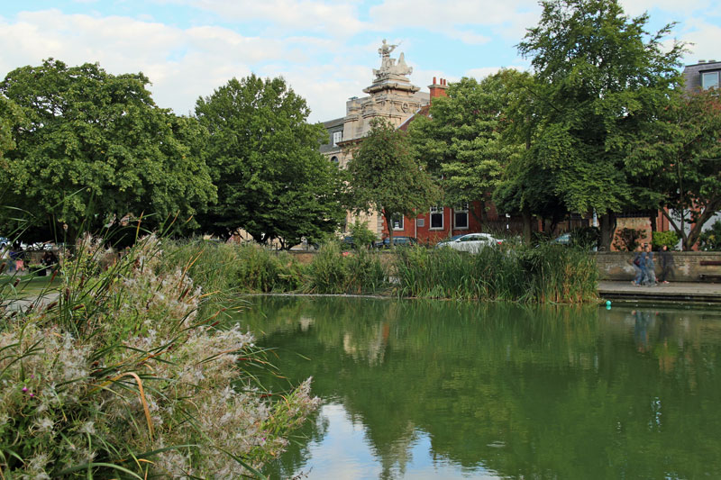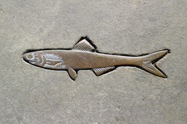 The start of the walk, in Queen Victoria Square. The object is to follow a sculptured trail of fish around the town