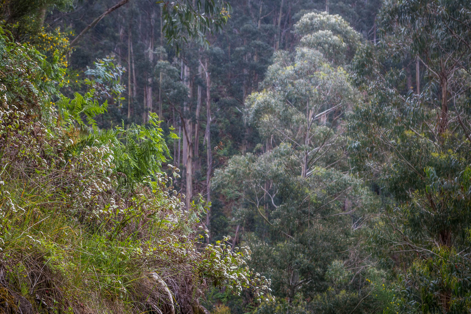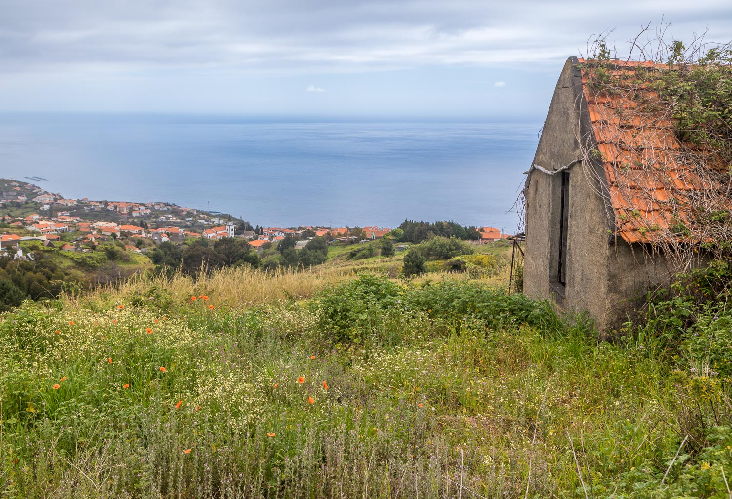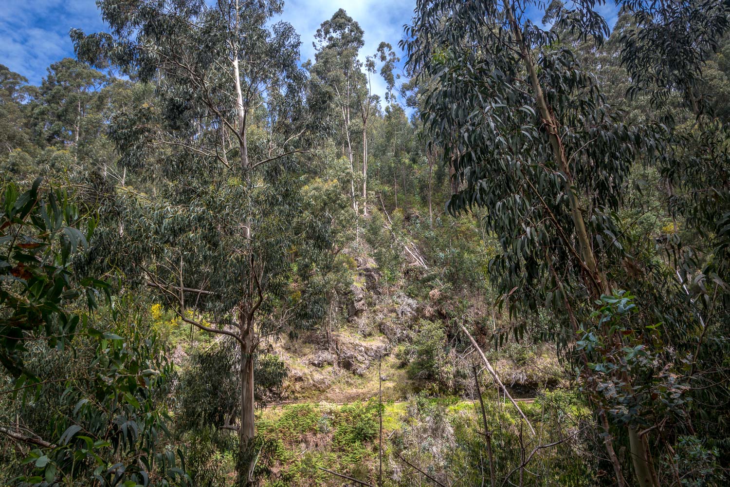 Another advantage of levada walks is that navigation is never an issue. For this reason there’s no need to describe our route, save to say that the highlight was a section beyond Prazeres where we left civilisation behind and walked into a deep and otherwise inaccessible valley, where the levada wound its way around steep ravines. Ancient eucalyptus trees and other lush flora imparted a magical atmosphere