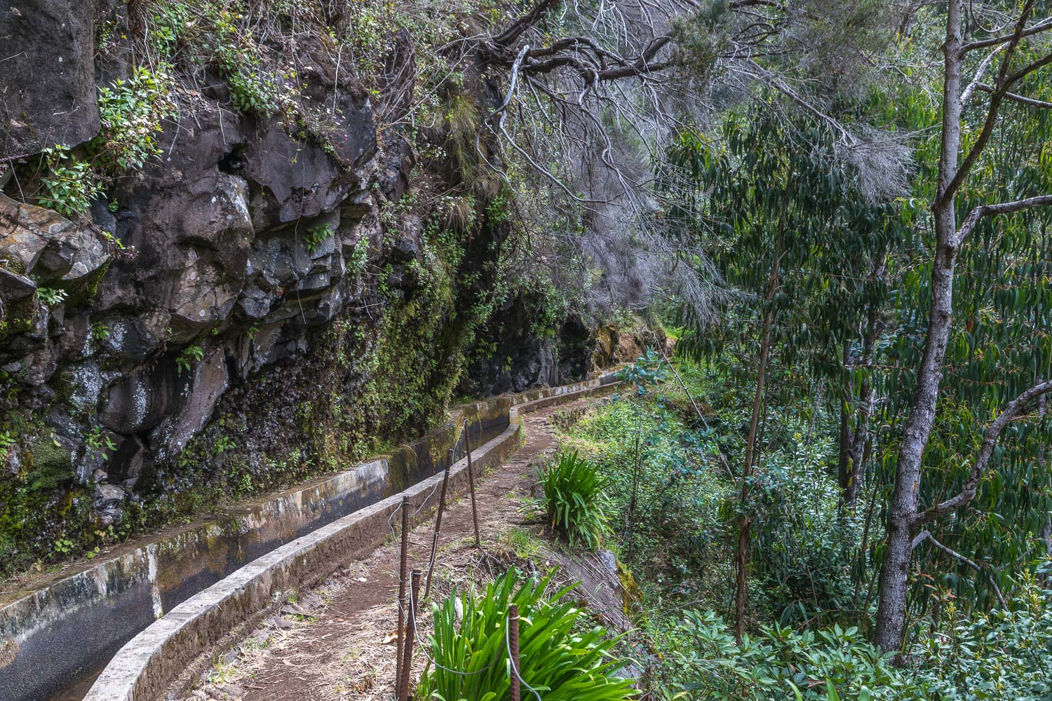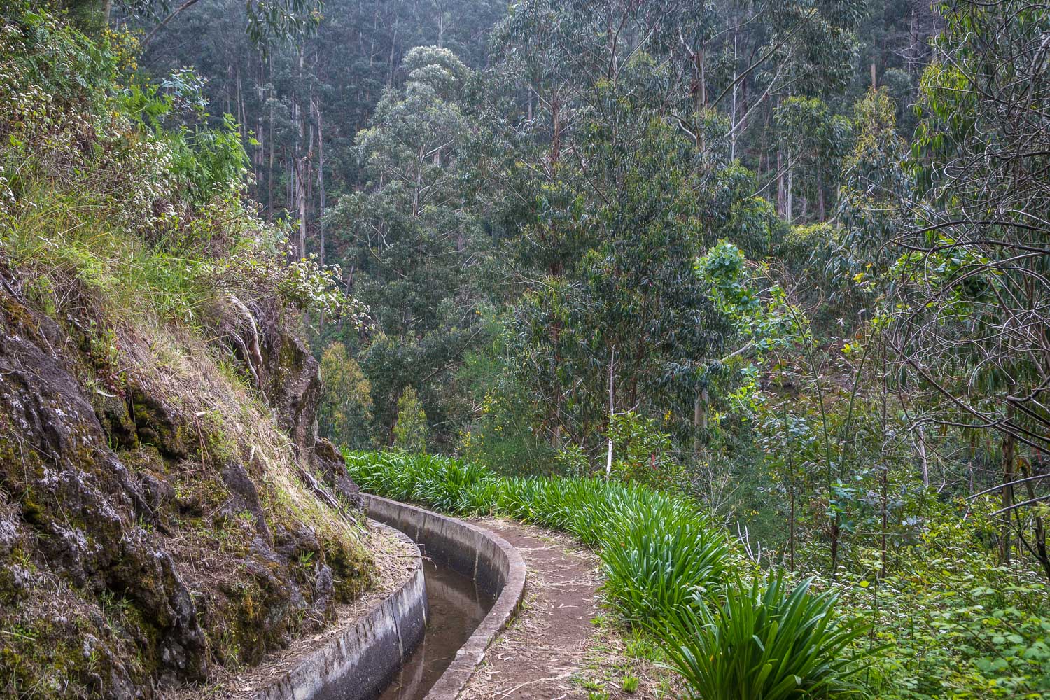 The system was not engineered for walkers. Its original purpose was to bring rainwater down from the high rainforests to the lower agricultural areas, and it still serves this purpose. As a happy and unintended consequence the access paths next to these drainage channels have opened up numerous opportunities for walkers, allowing access to otherwise impenetrable terrain. The levadas, sometimes carved into the rock with precipitous drops below, run deep into gorges and across sheer mountain sides all the while maintaining a gentle gradient, as the intention was to keep the water flow as slow as possible