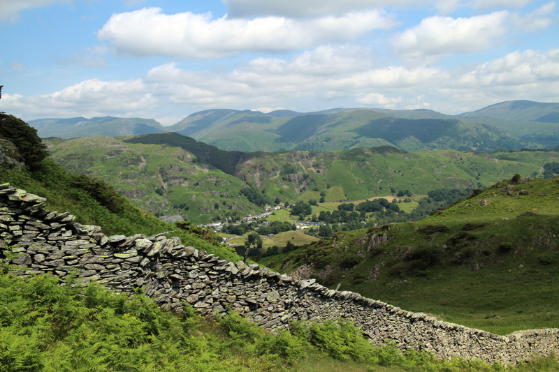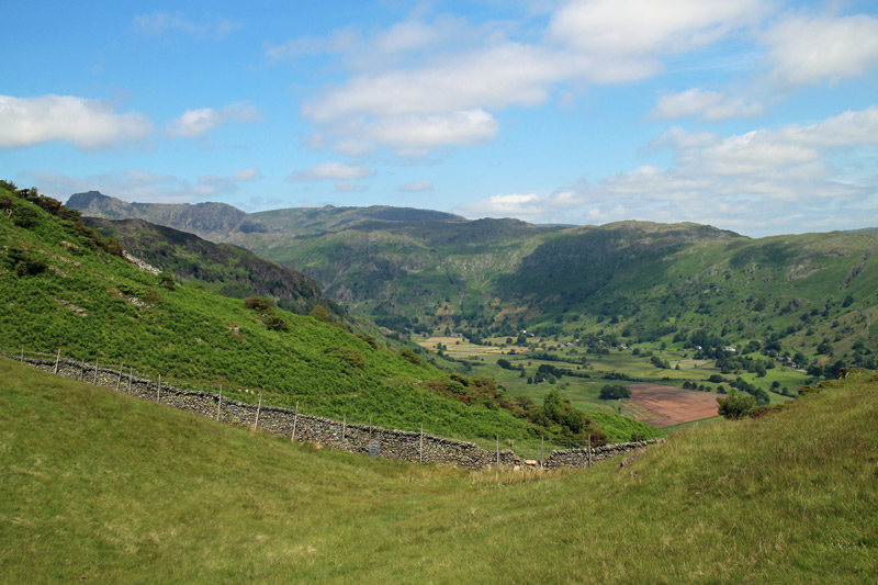 We retraced our steps for a short distance and then headed back down an alternative path to Elterwater, from which we had good views over the Langdale valley