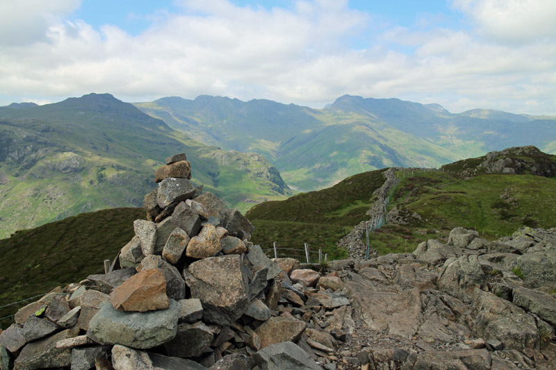 From here there were wonderful views, and the Langdale Pikes could be seen in all their glory. Just below the summit cairn we feasted on the view – and on our cheese and pickle sandwiches