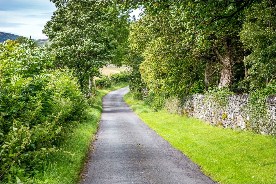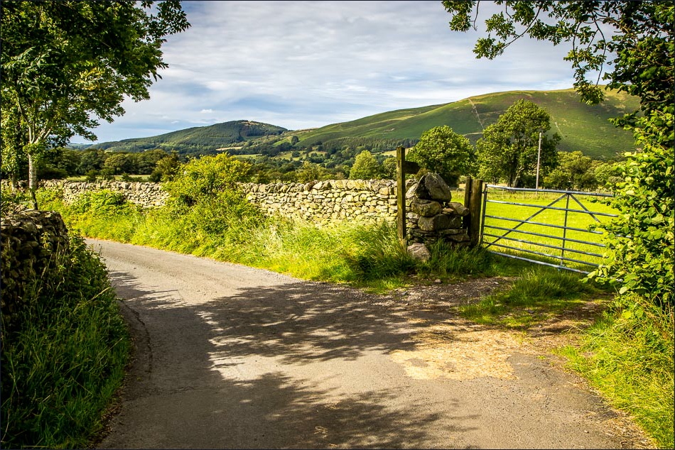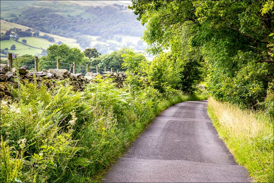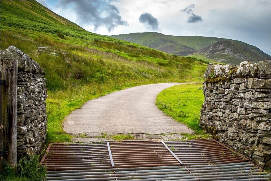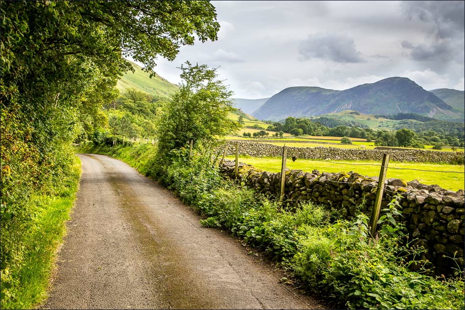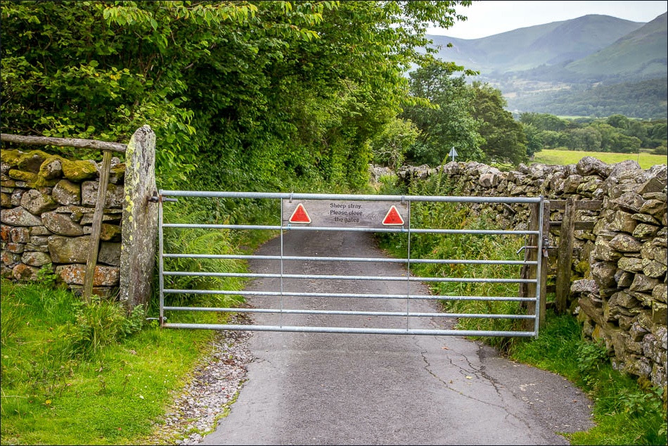 We’d planned to take the fellside path to the left but it started to rain here, so we followed the gated road