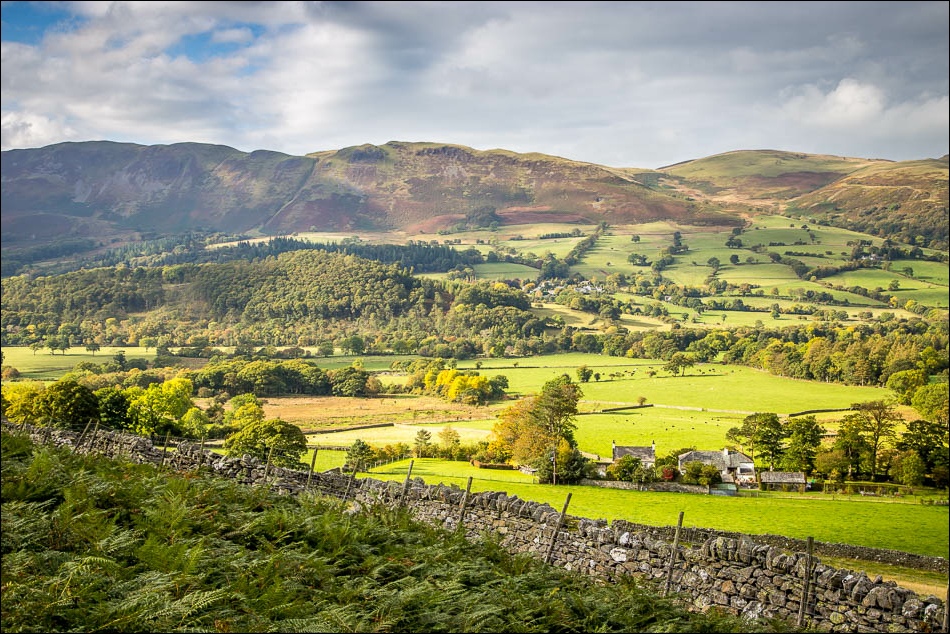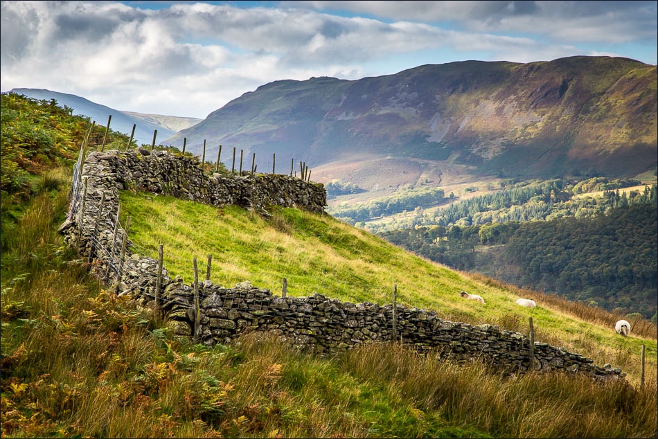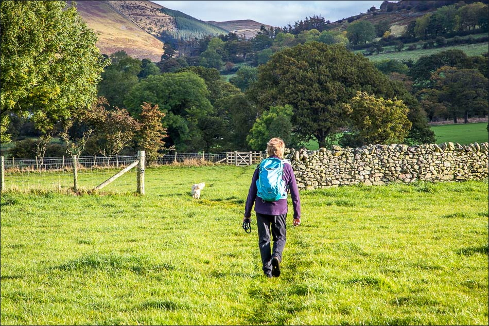 We walked along the lane towards Hopebeck and then across the fields into High Lorton. The new shop has been completely refurbished and was well stocked with tempting food. We made a few purchases and walked out of the village past Boonbeck and Scales to join the elevated path which runs along the length of the vale, giving wonderful views all the way