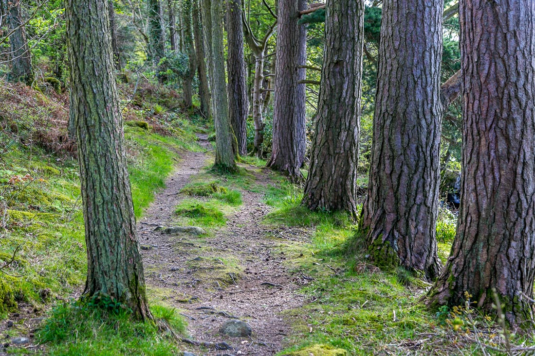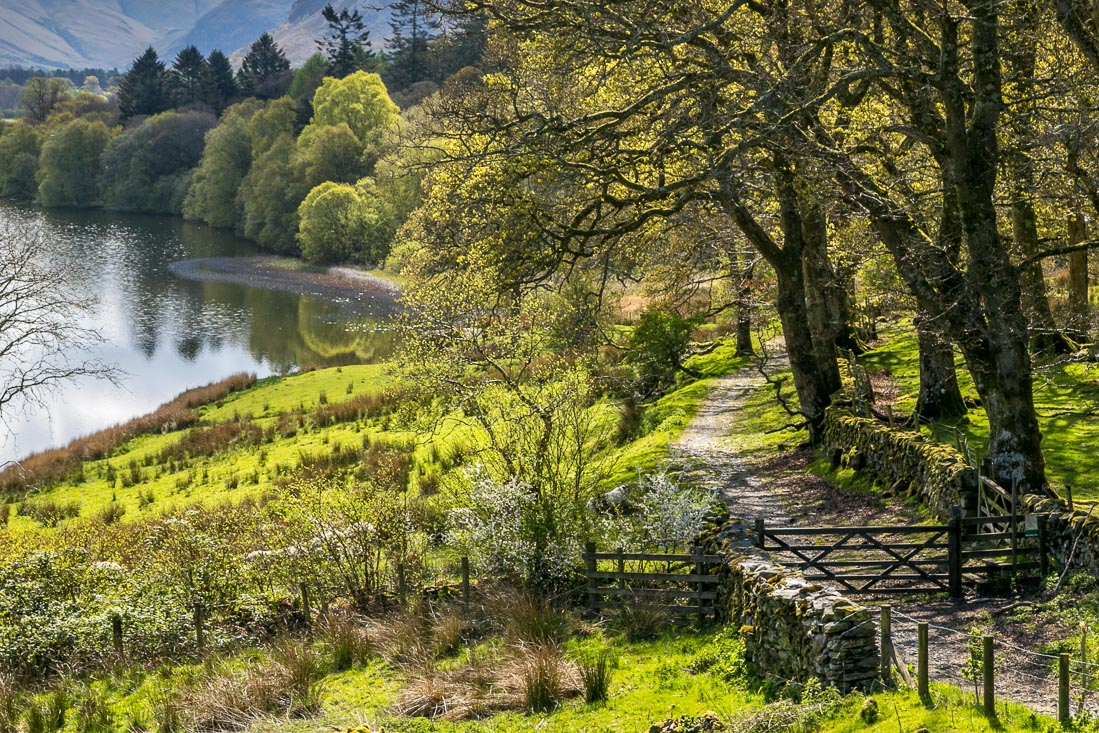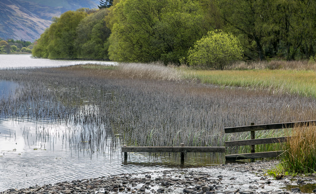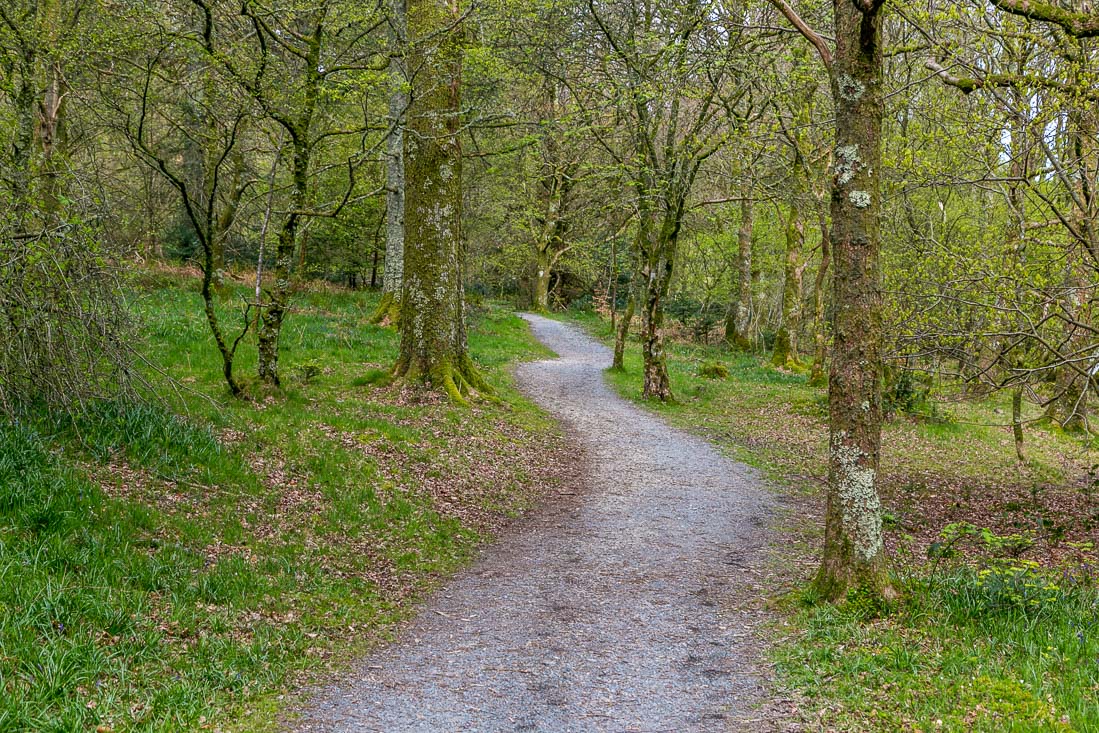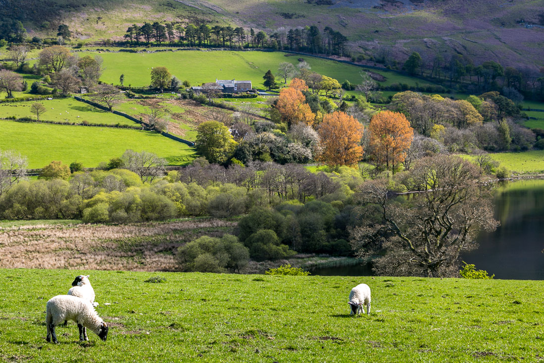 Just before the farm we left the track to join a path leading to Watergate Farm. Having walked through the farm we arrived at he head of Loweswater, and from here we followed the delightful path through Holme Wood along the shore of the lake. The bluebells in the wood were just starting to bloom, and we were a little early in the season to see them at their peak