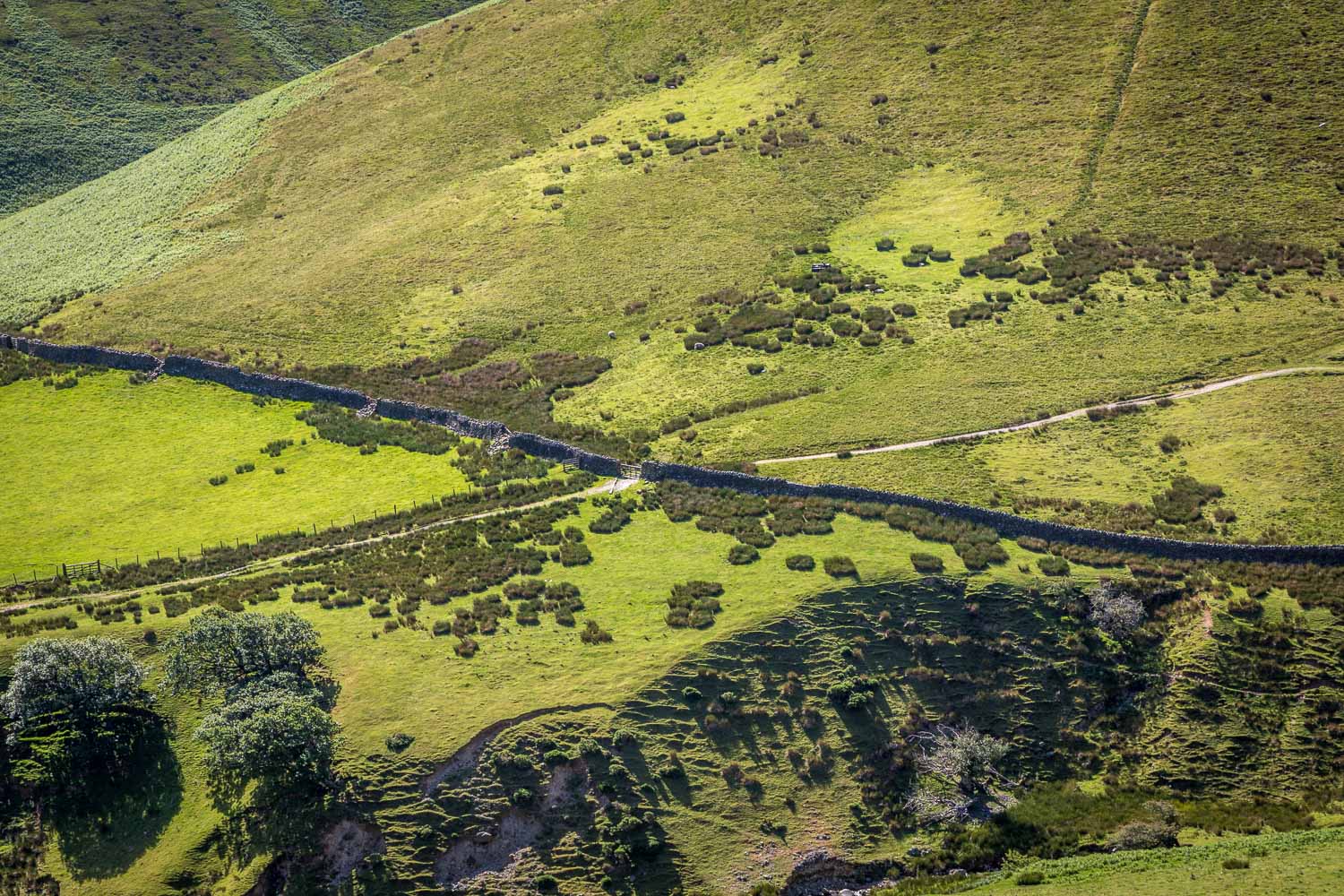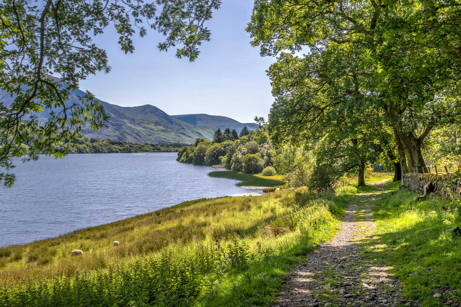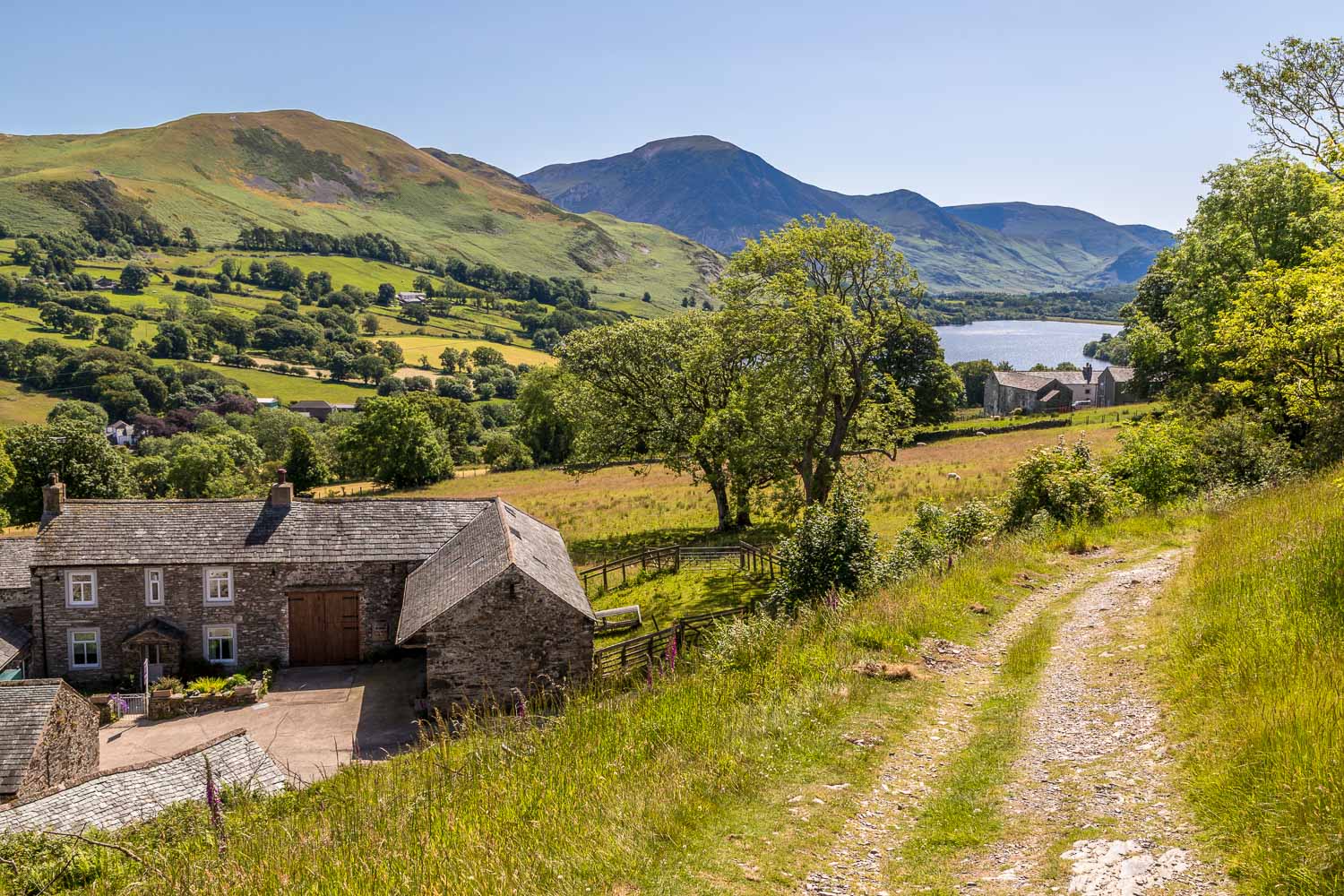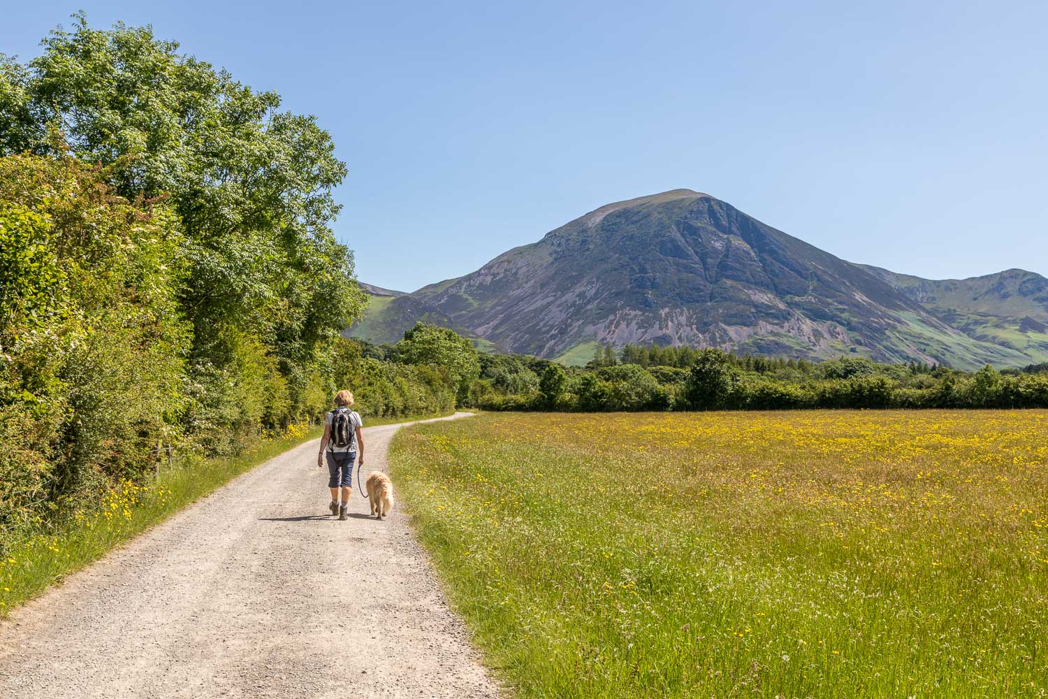 It was forecast to be a scorchingly hot day, so we made an early start and parked as usual at Maggie’s Bridge where there is space for 8-10 cars. Instead of heading directly to Loweswater we followed the track to High Nook Farm, where Alfred Wainwright used to stay when he was researching his Guide to the Western Fells. After passing through the farmyard we carried on to the head of the valley before joining the wonderful terraced path above Holme Wood, which is an ancient coffin road from Loweswater to St Bees. The views from here are superb