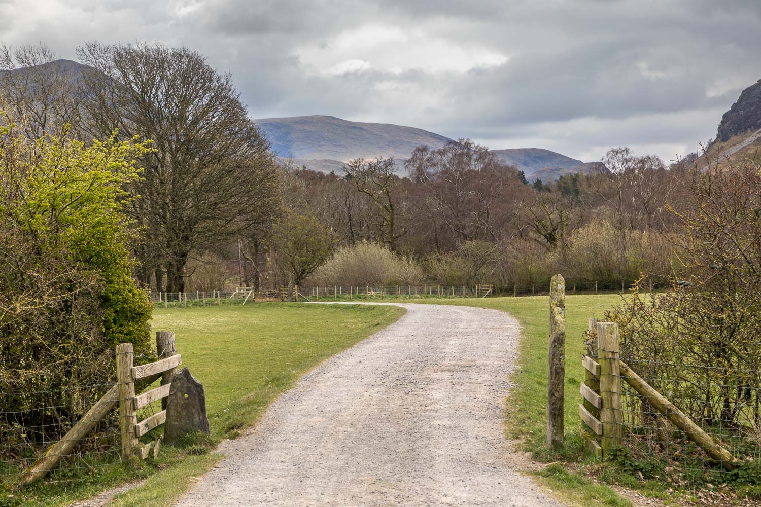 Next day, the start of the walk from Maggie's Bridge car park. Beyond the gate we turn left, and will follow a path above the 'Loweswater Pheasant' - can you spot it?