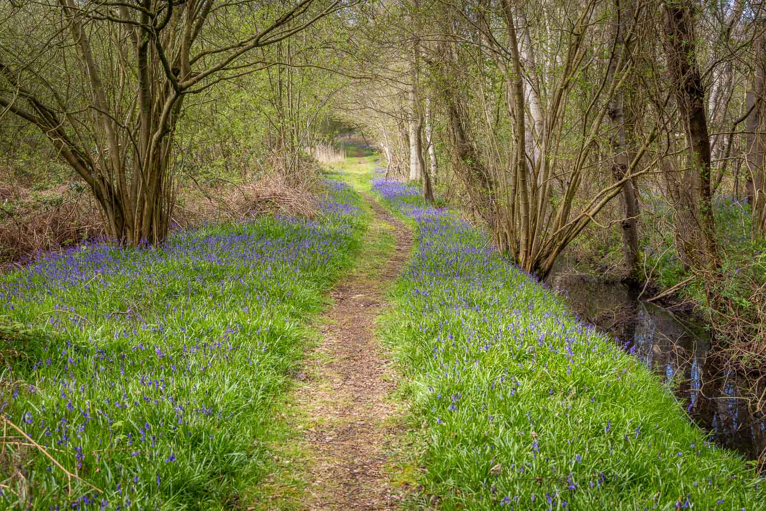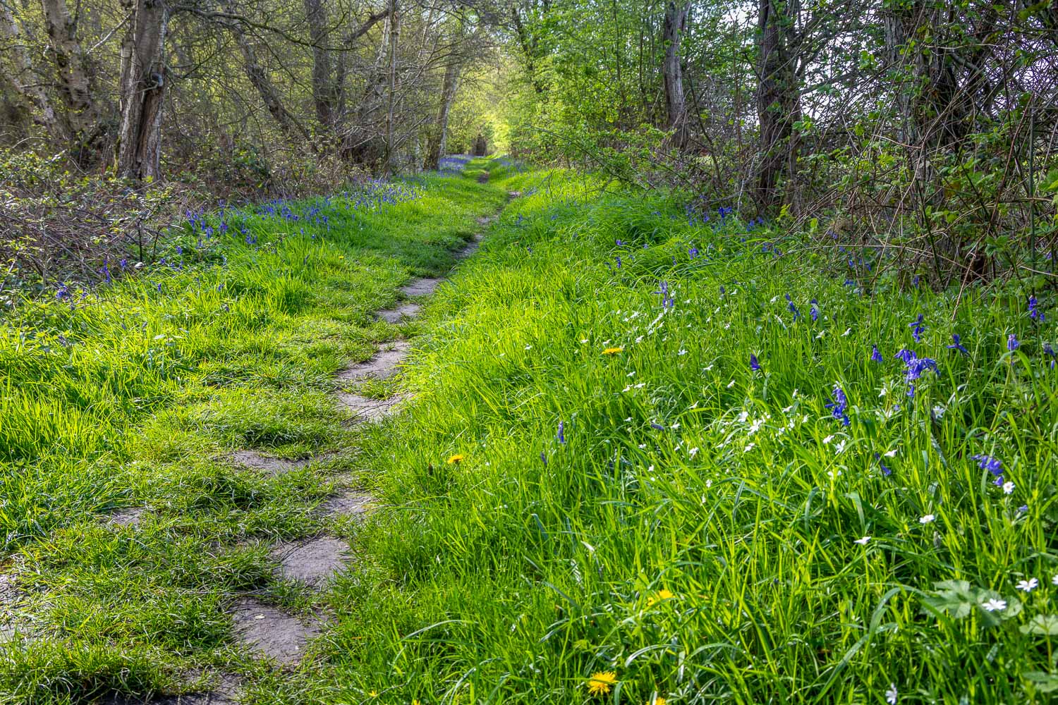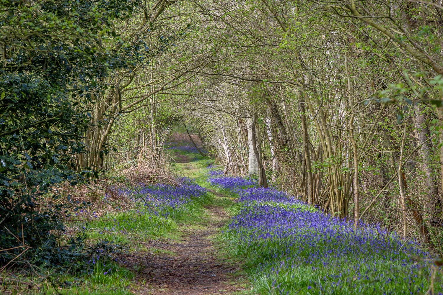 There are a few roadside parking spaces along Sand Lane by the two entrances to the wood and I parked in one of these. On entering the wood I followed the track along its eastern edge. Within a couple of minutes I was greeted by the wonderful sight and scent of countless bluebells – our native bluebell, Hyacinthoides non-scripta, otherwise named common bluebells, English bluebells, British bluebells, wood bells, fairy flowers and wild hyacinth. The sight was enhanced by occasional patches of stitchwort and primrose, and a host of warblers provided background musical accompaniment, including chiffchaff, willow warbler and blackcap. Other residents include treecreeper, great spotted and green woodpeckers and woodlark. Anyone with a passing interest in birdlife is recommended to bring binoculars