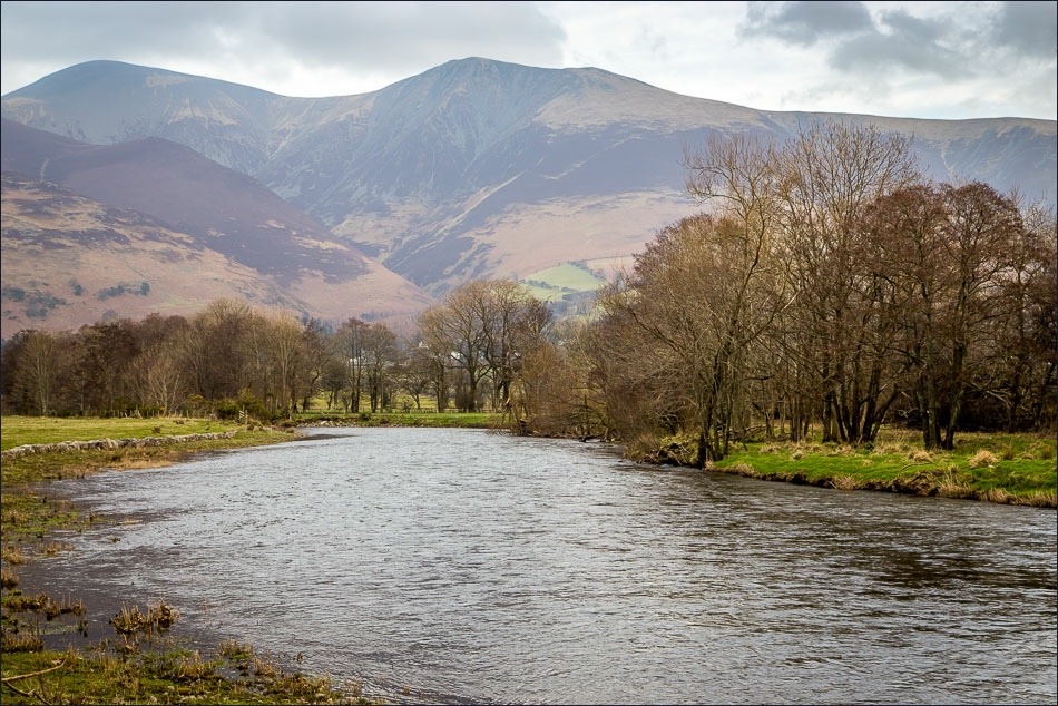 It was forecast to rain from mid morning, so I made an early start and parked on the roadside in the village of Portinscale. I walked along a track out of the village until I met the River Derwent, at which point I turned left to follow the riverbank. The Derwent would be my companion for the remainder of the outward leg of today’s walk