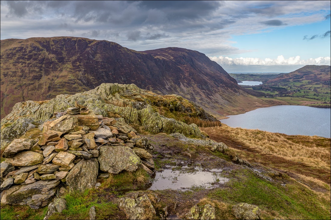 I parked in the National Trust car park at Hause Point from where the climb starts almost immediately. Within a few minutes there were lovely views over Crummock Water and Buttermere. After a steep section up a rocky staircase I was soon on the north top and from here I made our way across the knobbly summit ridge known as Low Bank