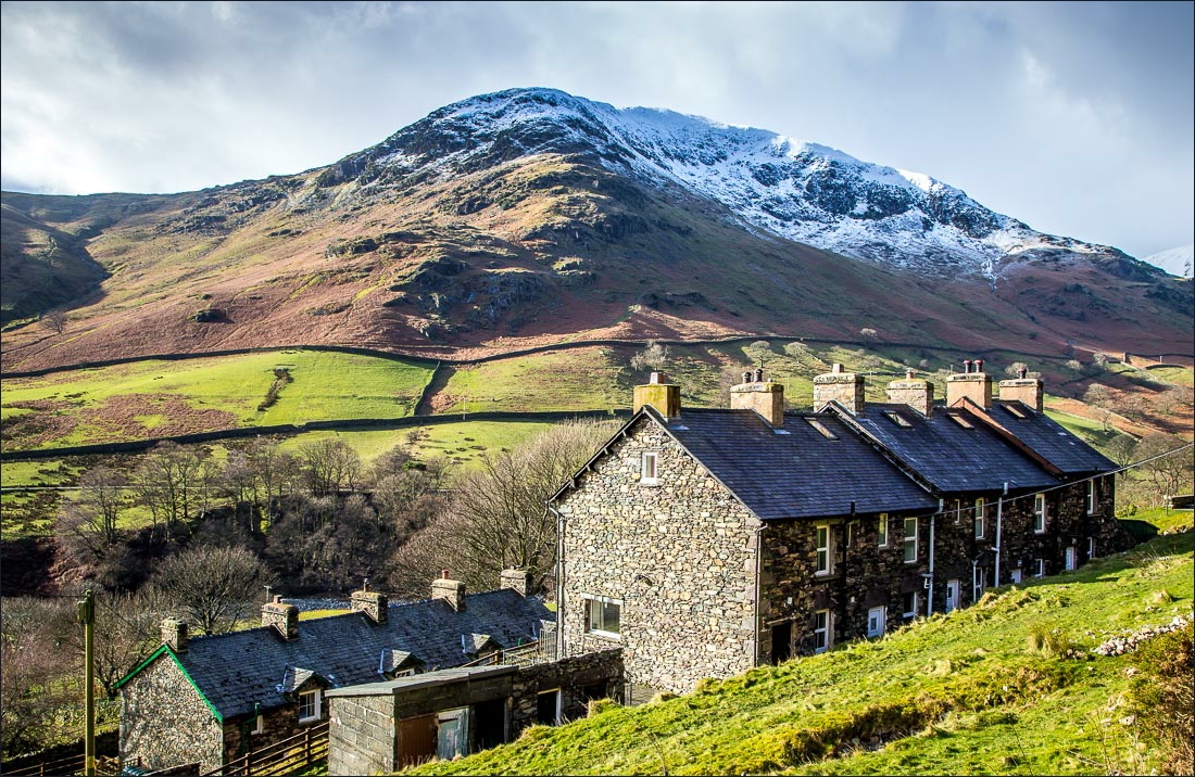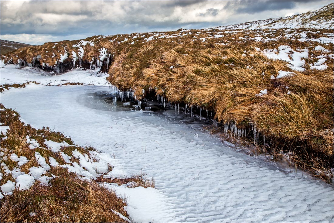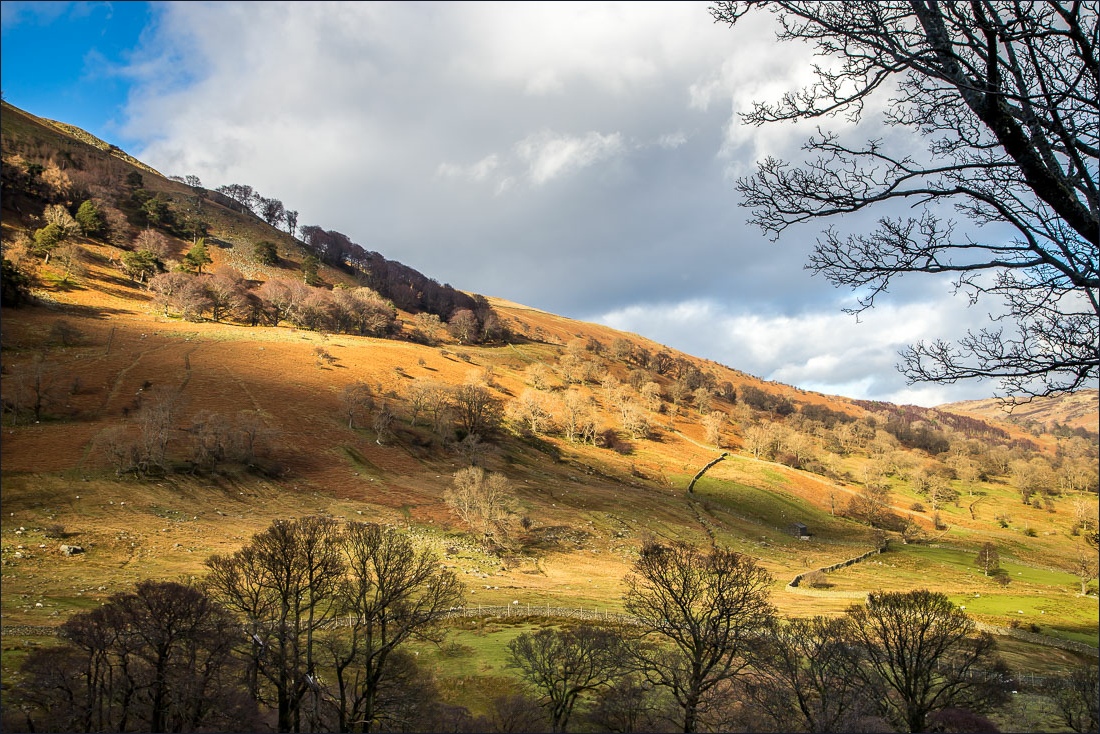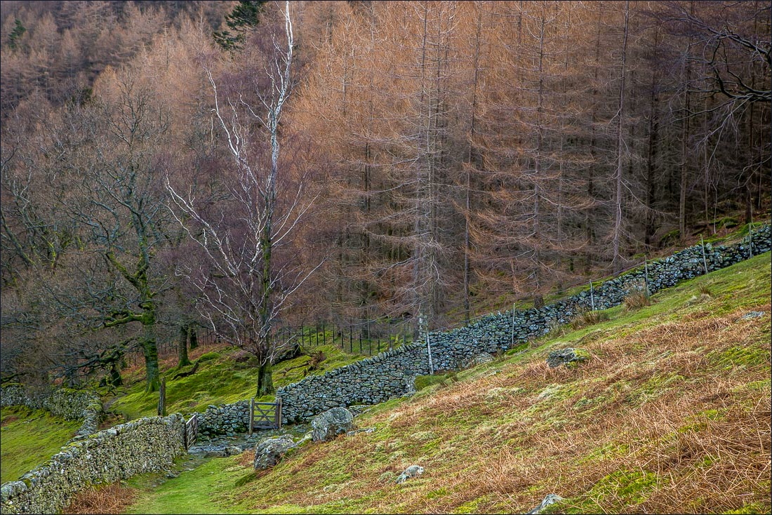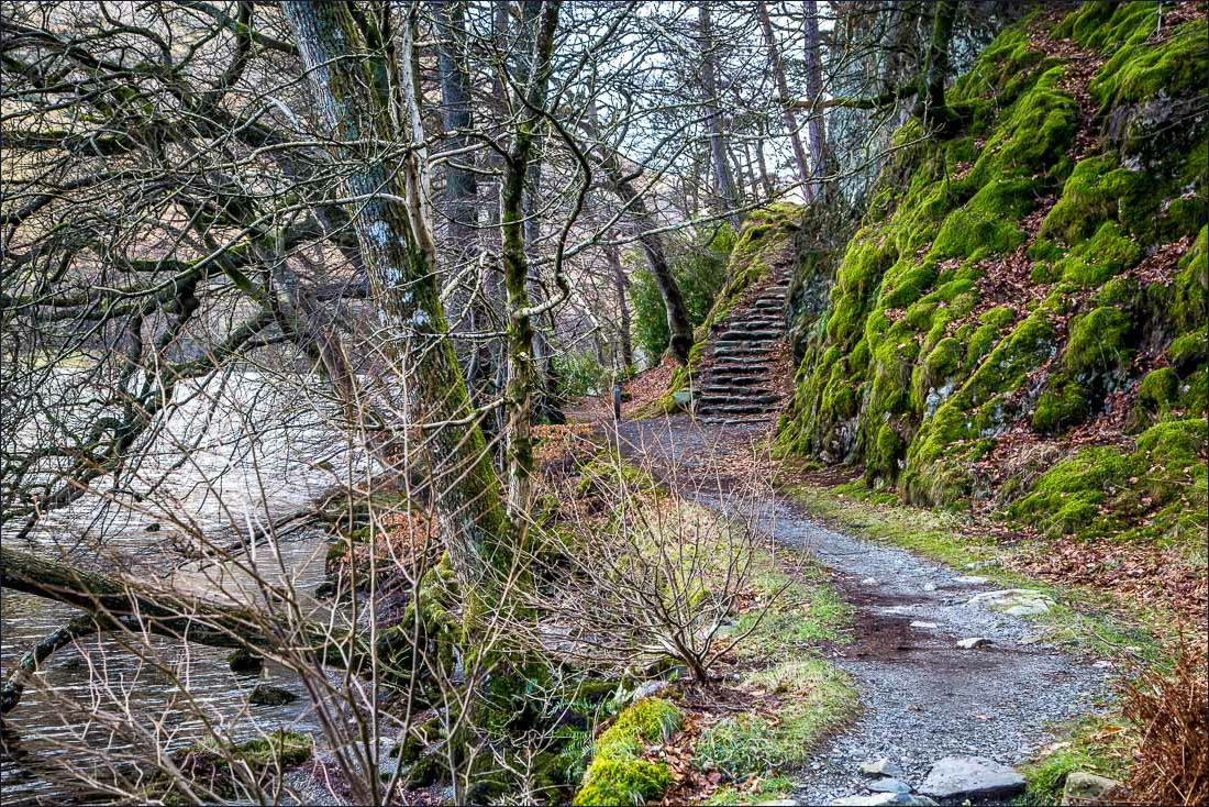 The initial part of the descent into Glencoyne proved to be very tricky and extreme care was needed. The narrow path runs at high level round the flanks of the fell and was covered in hard snow and sheet ice. Eventually we descended below the snow line and were able to make quicker progress along Glencoyne – a beautiful section of the walk