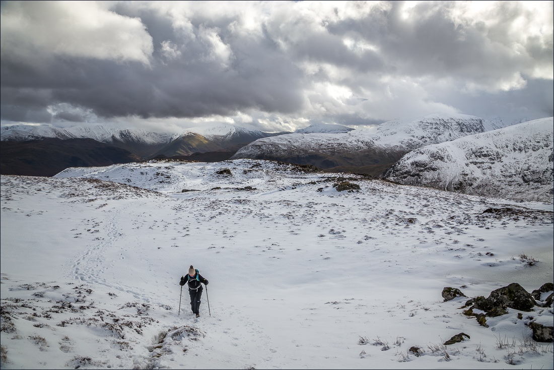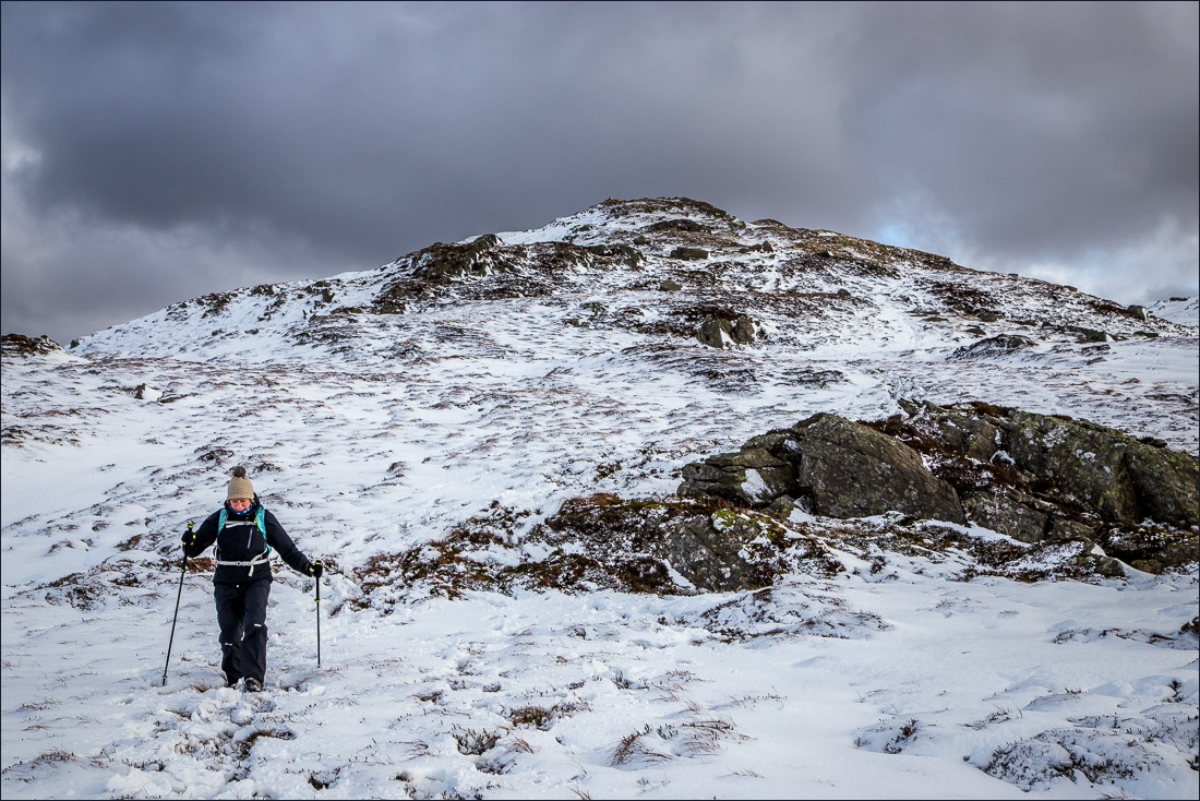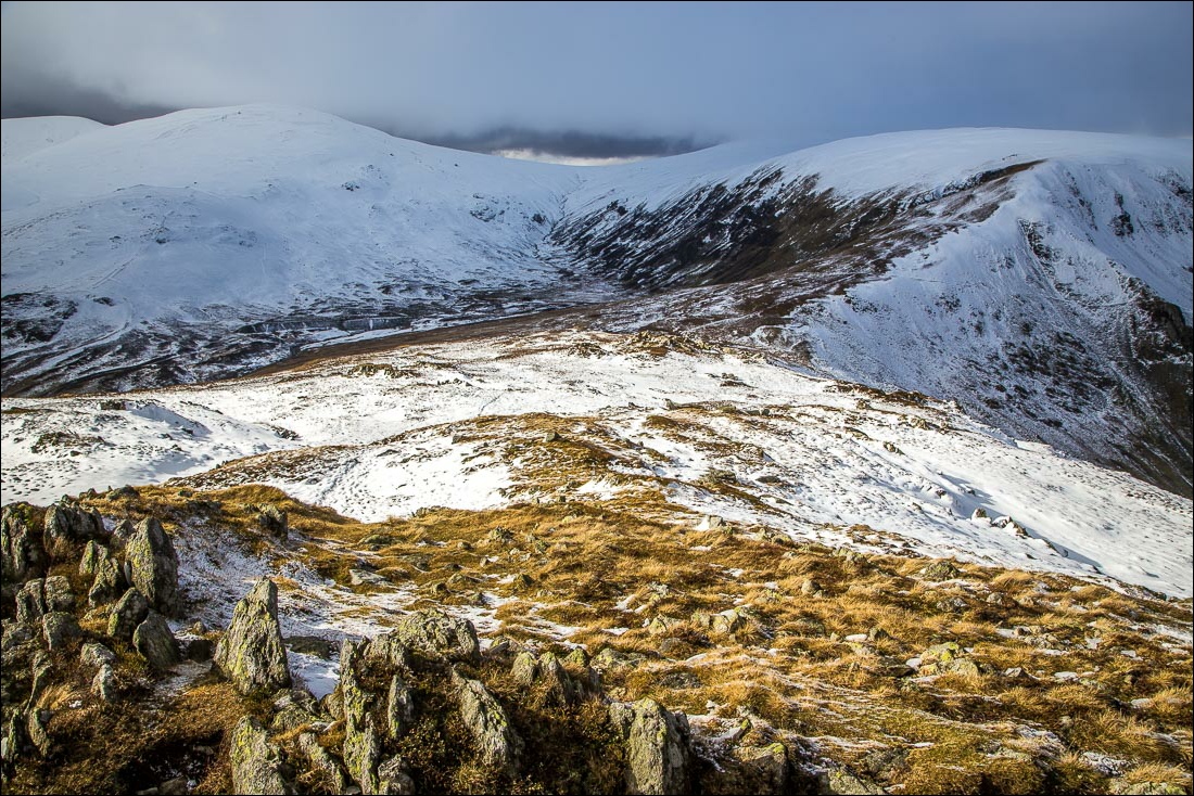 We climbed up the steep path, reaching the snow line after a while. The path disappeared at this stage but we were able to follow the footprints of others to the summit of Sheffield Pike. Again it was too cold to linger so we were soon on our way down.