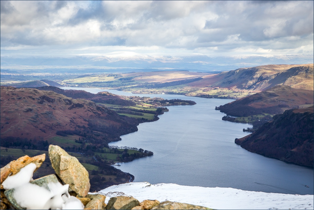 We parked in Glenridding, which is open for business following the recent devasting floods in Cumbria, and walked out of the village along the Greenside Road, leaving the road just before Rake Cottages to start the climb up Glenridding Dodd. We followed the path up The Rake and before long we were enjoying wonderful views from the summit of the fell. It was bitterly cold though so we didn’t linger long and made our way across to the ridge leading up to Sheffield Pike