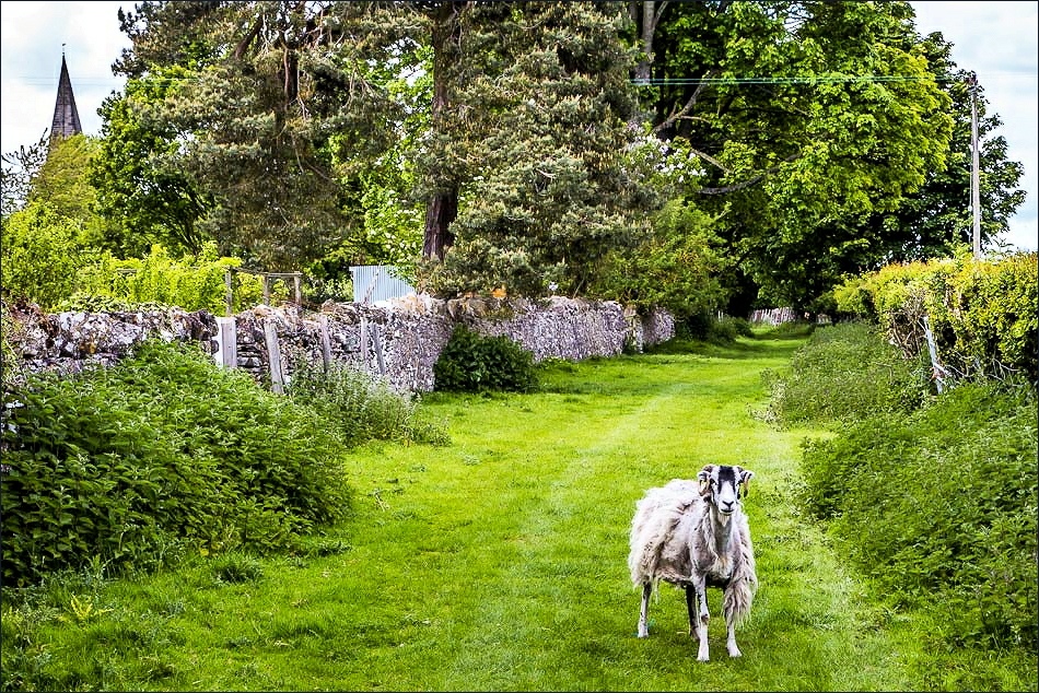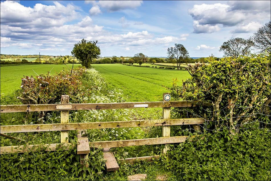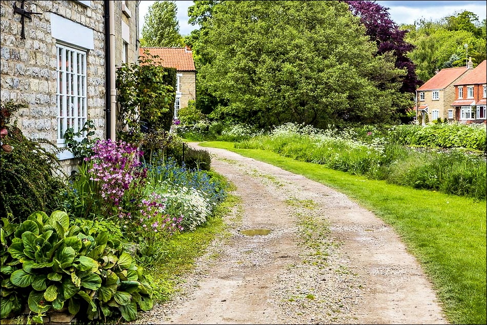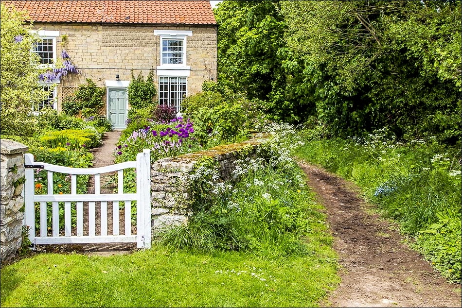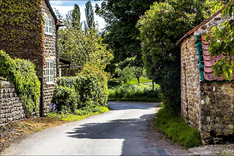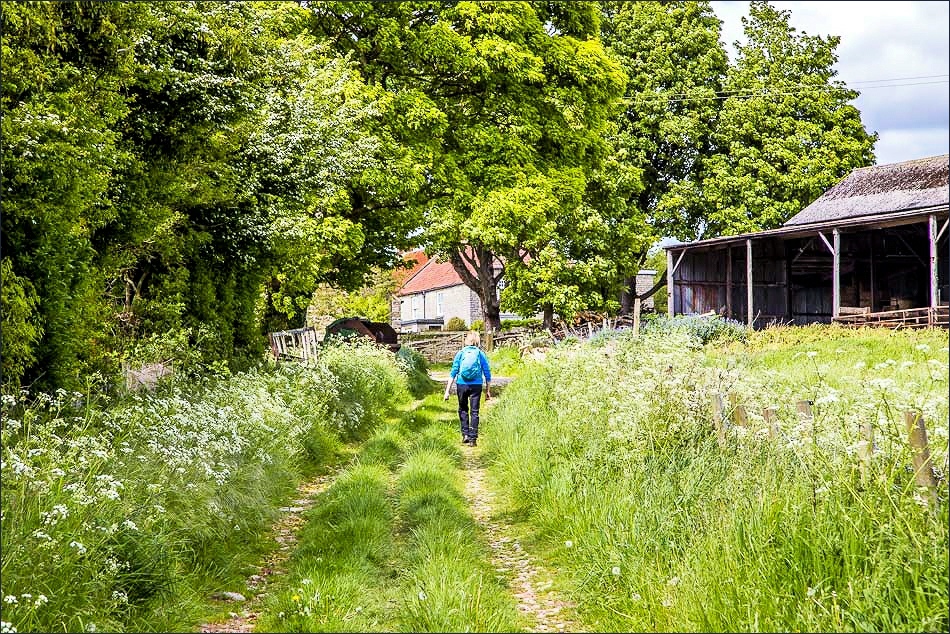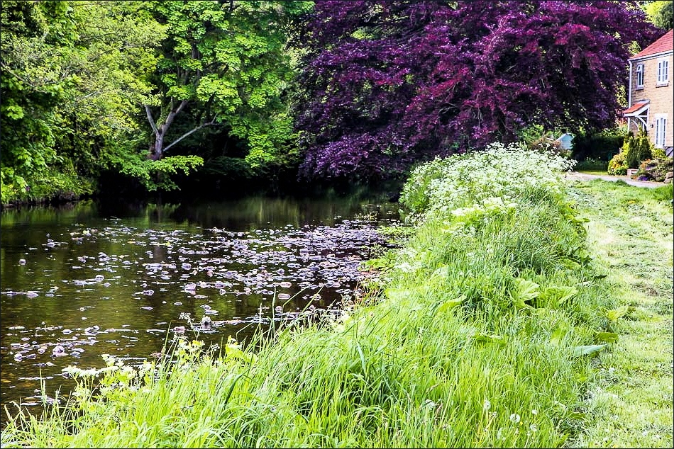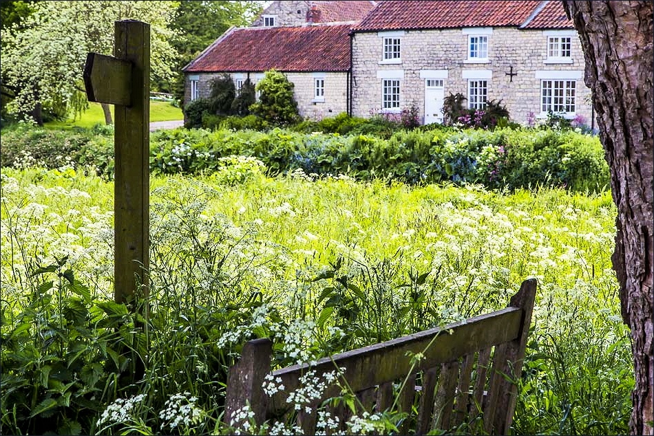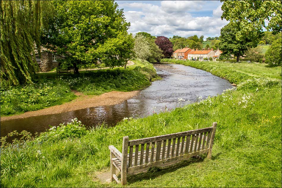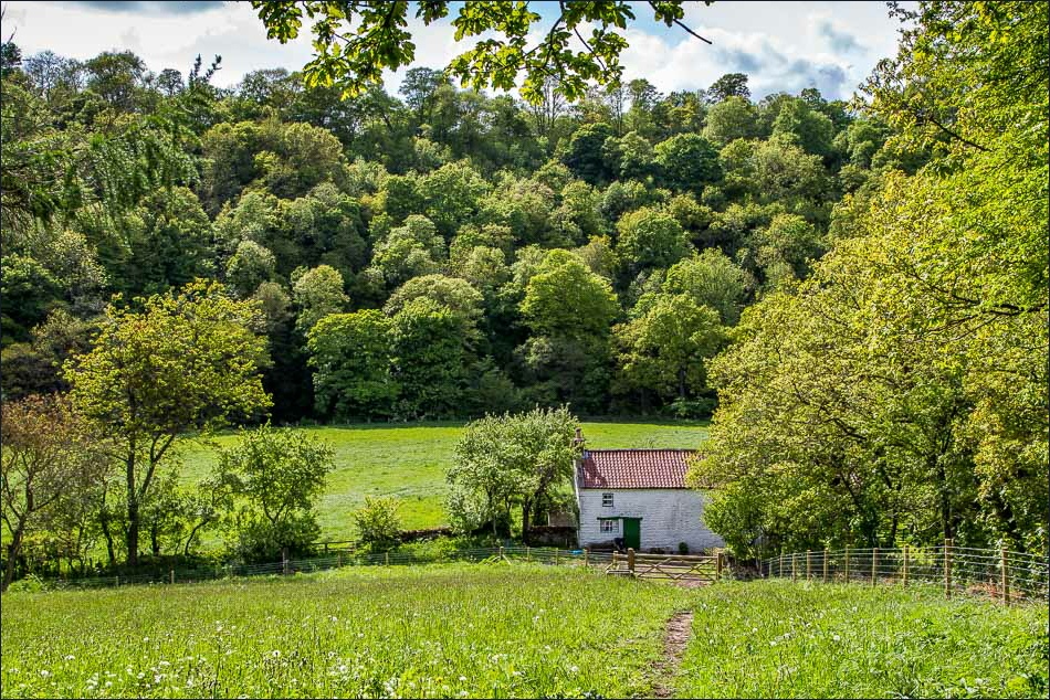 After leaving the wood we walked uphill through farmland to the unspoilt village of Appleton-le-Moors, where we turned right to descend back to the River Seven through more woodland covered with clouds of wild garlic
