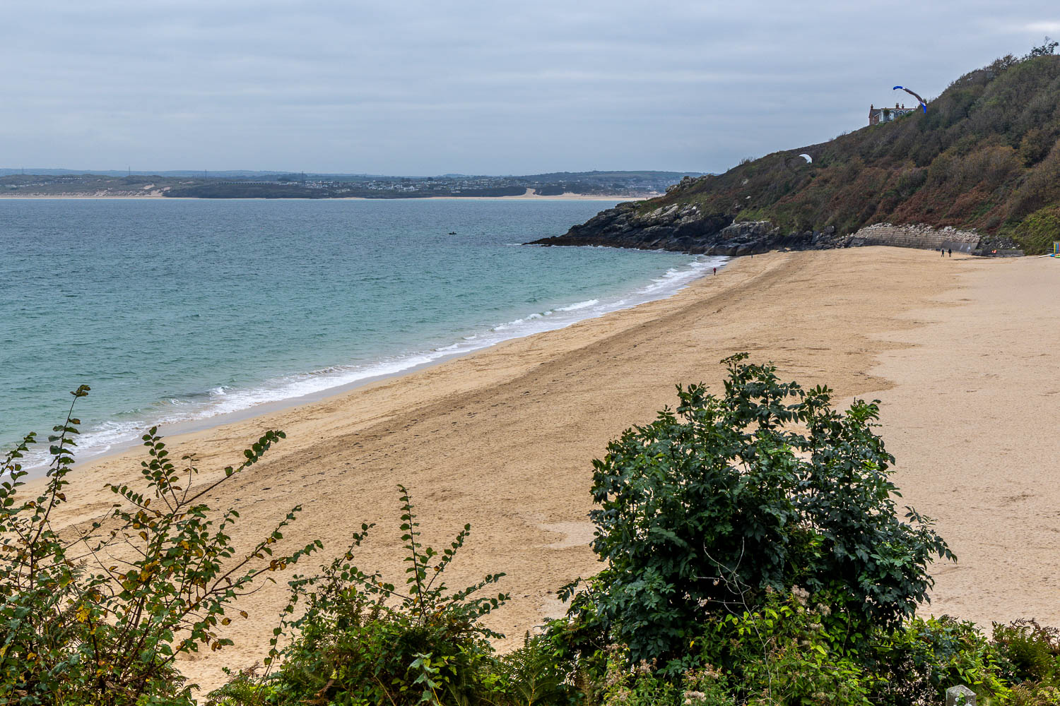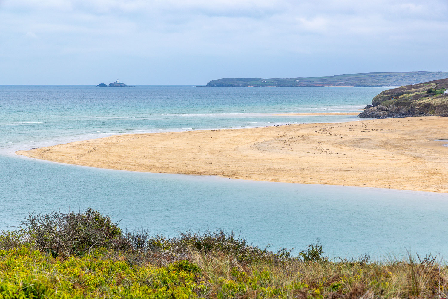 After an enjoyable 10 minute train journey we disembarked at the small station in Lelant and joined the South West Coast Path which took us above the Hayle Estuary, passing by the church of St Uny and St Anta. The path then headed over the dunes and above the vast expanse of Porth Kidney Sands. We detoured from the South West Coast Path here and walked down the dunes to follow the beach. The headland of Clarrack Gladden prevents further progress along the sands and we climbed back up the dunes to regain our original path