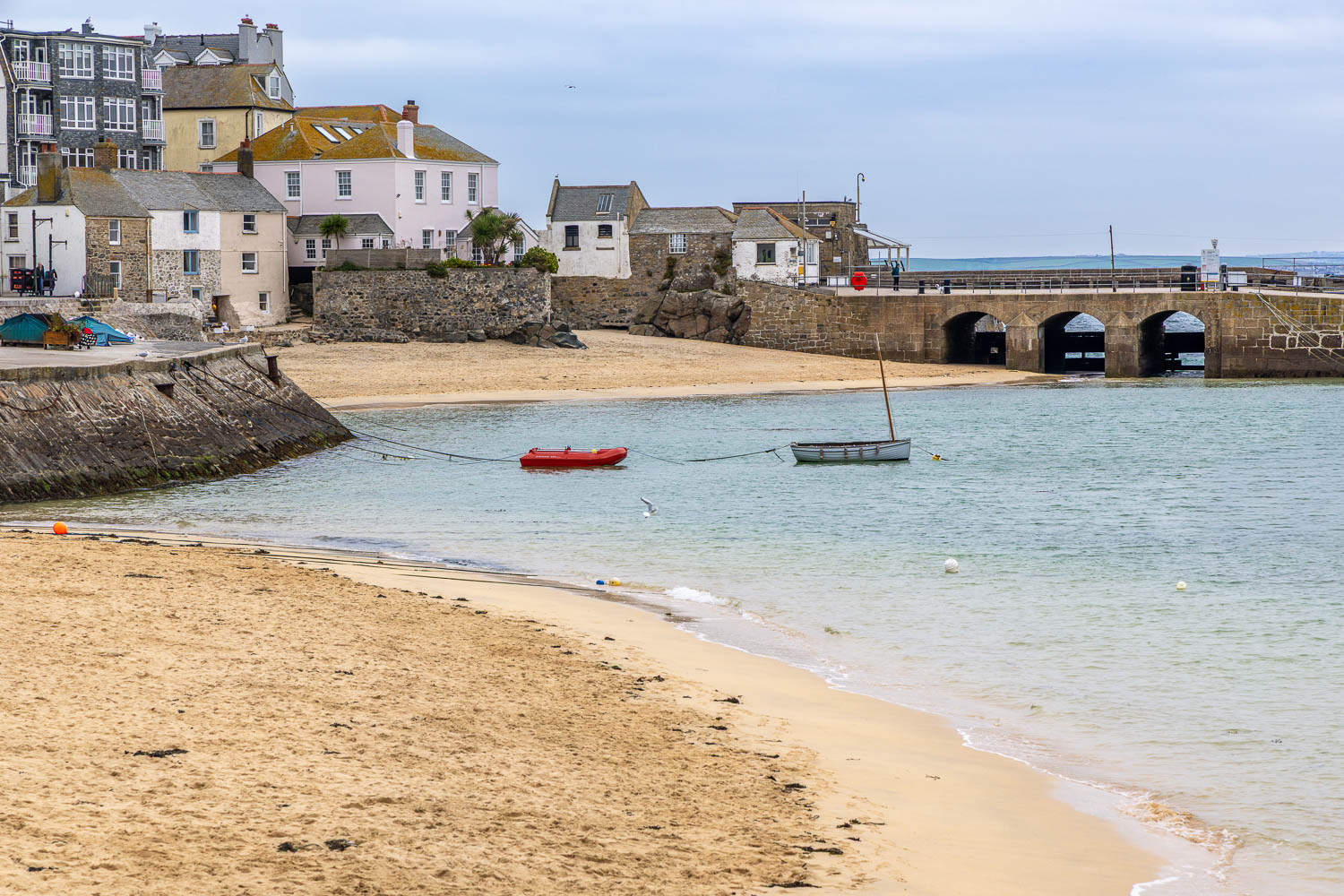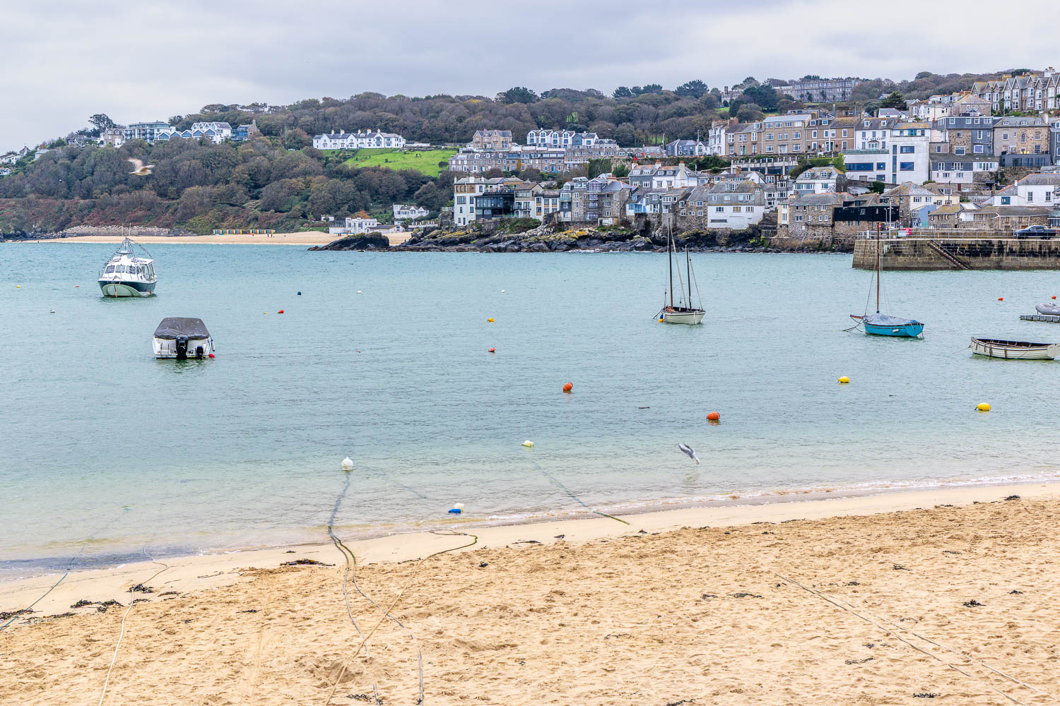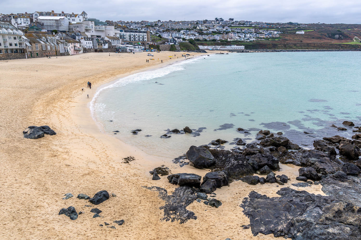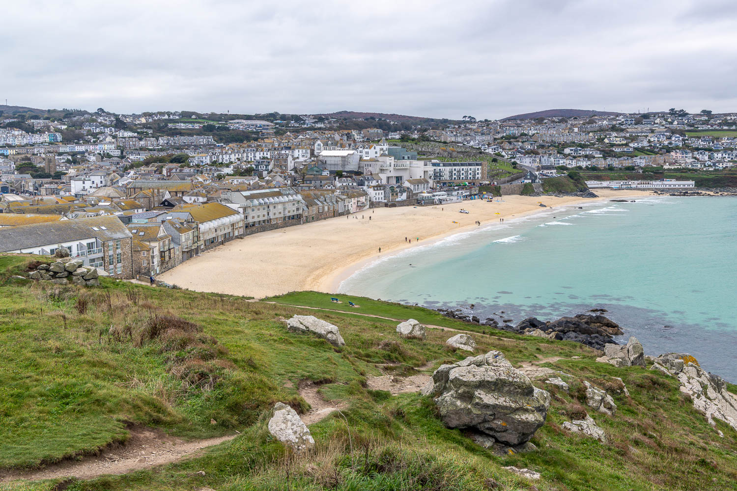 After a while we arrive at Porthminster Beach and St Ives, looking towards its harbour. The railway station is nearby and the walk could be ended here, but we preferred to explore St Ives