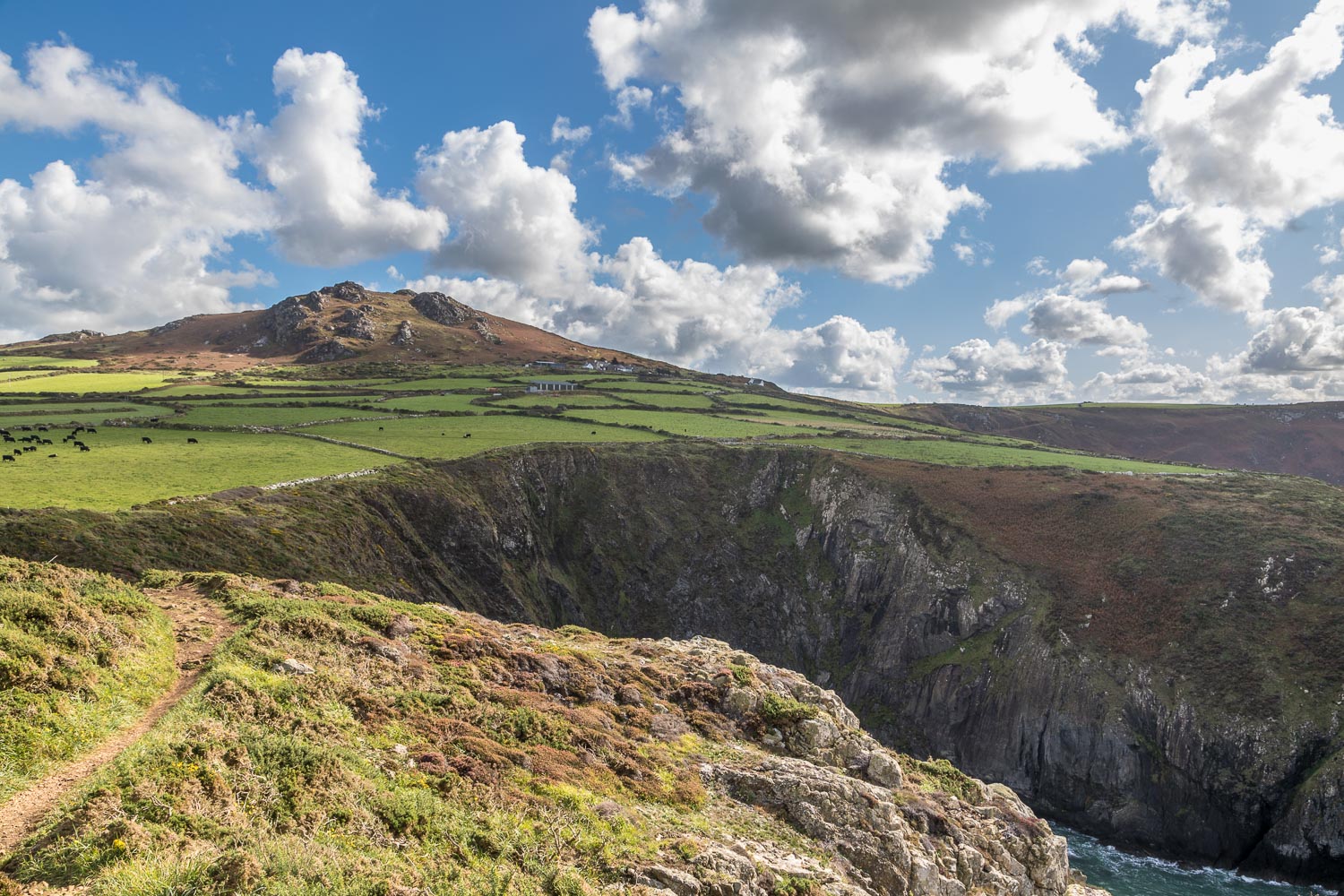 We parked near the Strumble Head lighthouse on Ynys Meicel, and followed the undulating Wales Coast Path as far as the head of Porthsychan. This marked the start of an inland section, mostly along quiet country lanes, with occasional views across the fields to the sea
