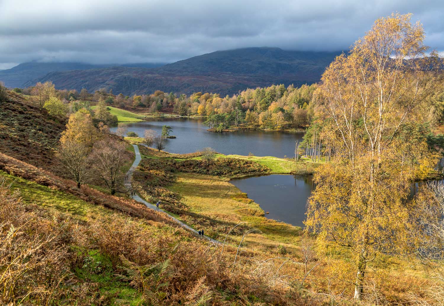 Tarn Hows is a well known beauty spot, perhaps too well known as it can be a little busy at times. The tarn is partly artificial, having been formed in the 19th century by merging three small tarns. When the Tarns and its setting came up for sale in 1929, they were bought by Beatrix Potter who sold the half containing Tarn Hows to the National Trust, and bequeathed the rest of the estate to the Trust in her will