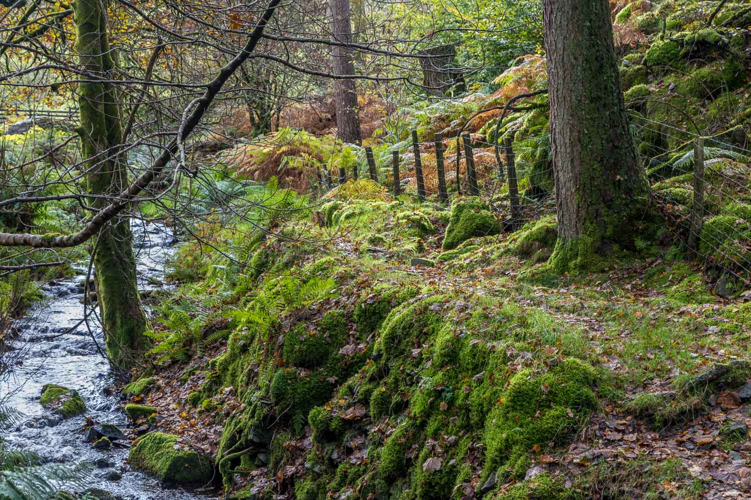 The start of the walk from Glen Mary car park. I cross the footbridge over Tom Gill, and the gill will accompany me to its outfall at Tarn Hows