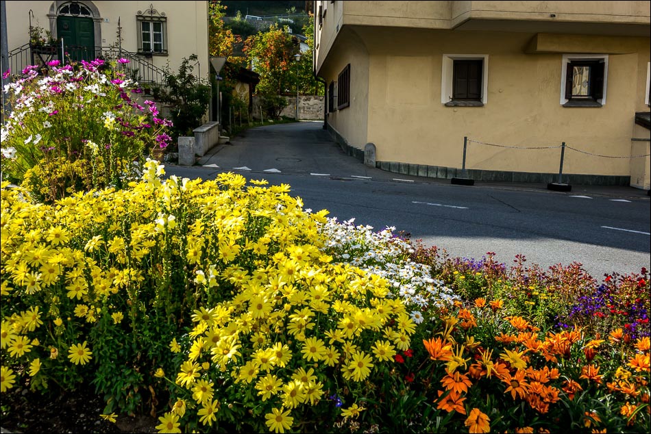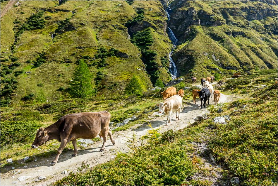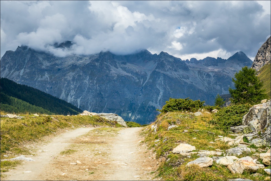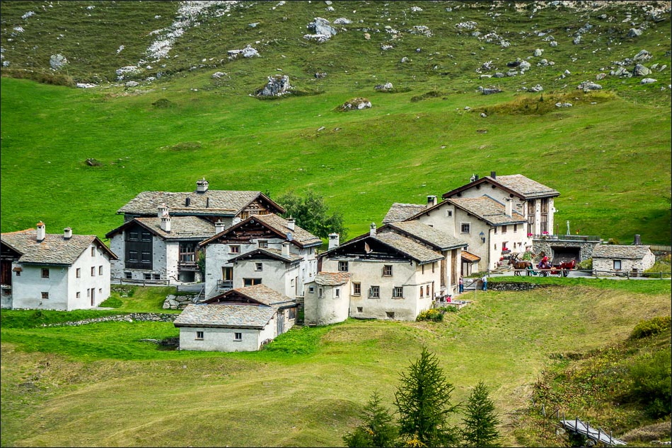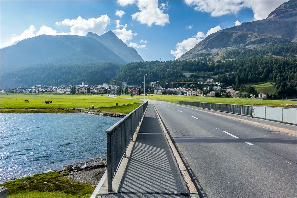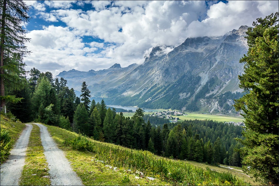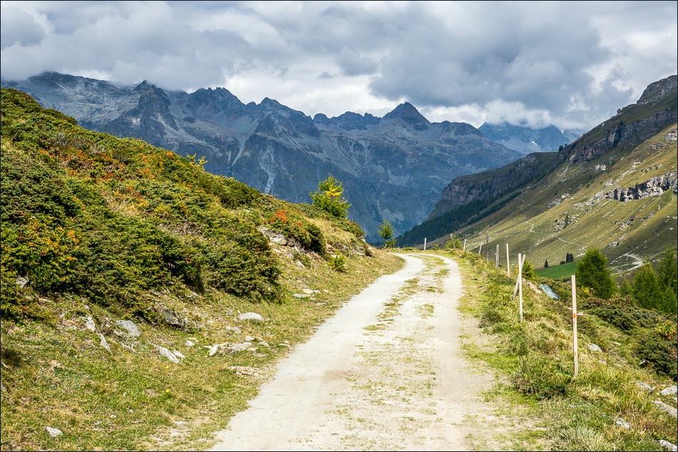 It was an enchanting ride through alpine meadows and small villages with mountains towering over us on all sides. When we reached the hotel we continued on foot to the end of Val Fex at Alp Muot Selvas, then returned along the valley on a higher level path