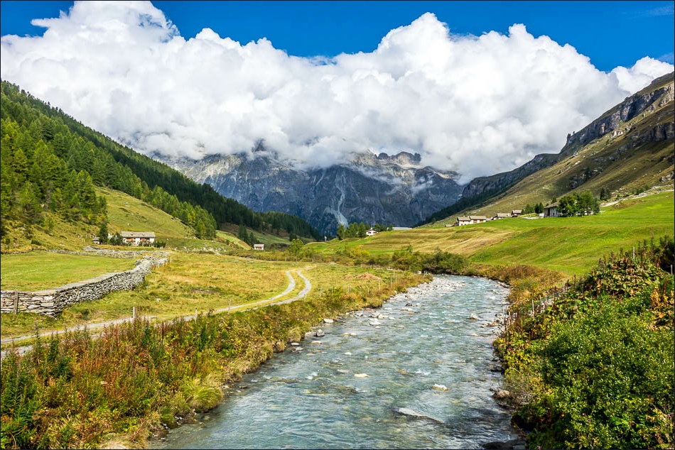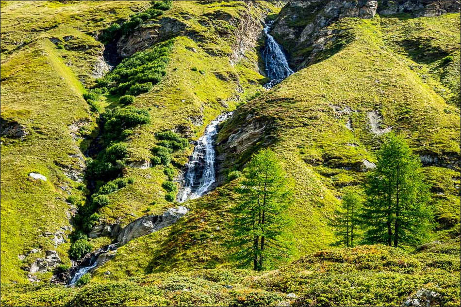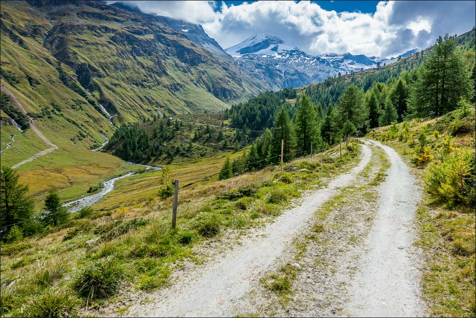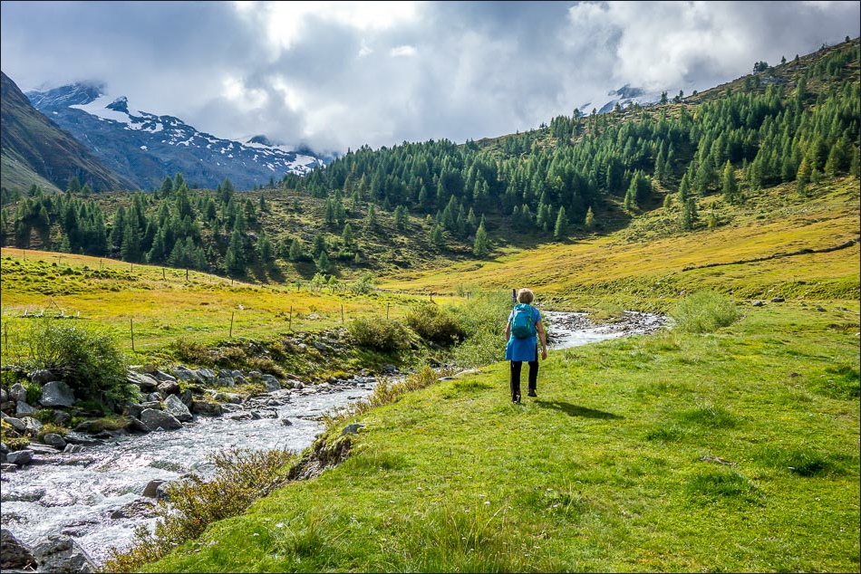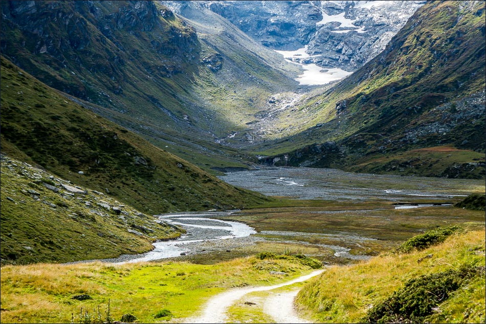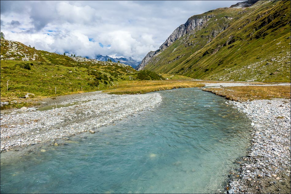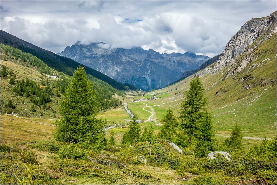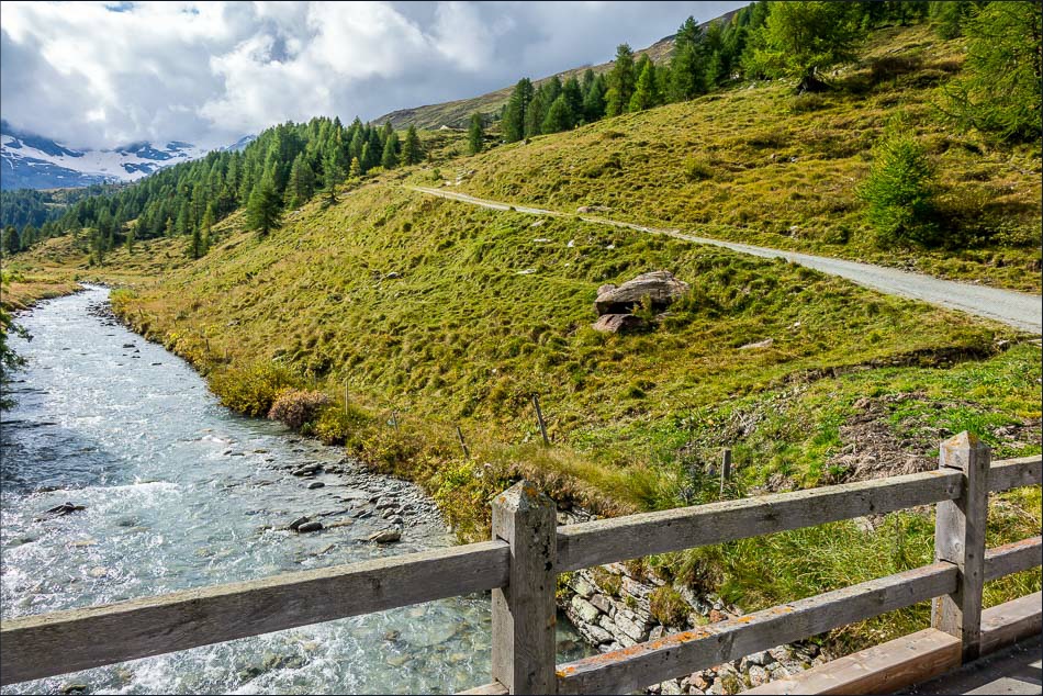 It was an enchanting ride through alpine meadows and small villages with mountains towering over us on all sides. When we reached the hotel we continued on foot to the end of Val Fex at Alp Muot Selvas, then returned along the valley on a higher level path