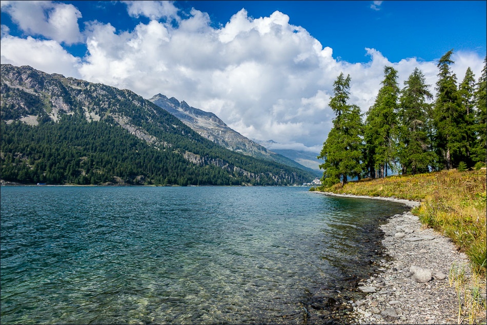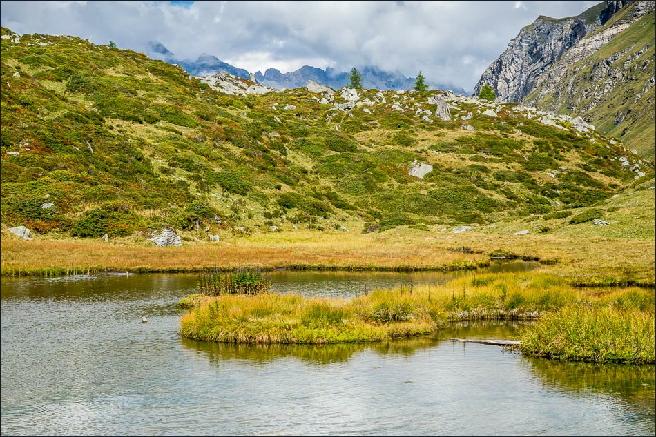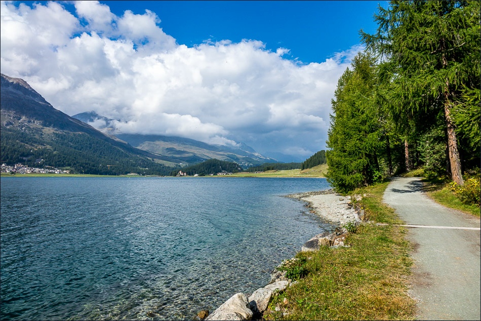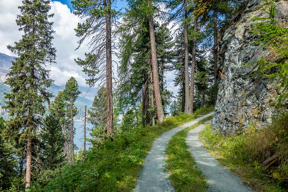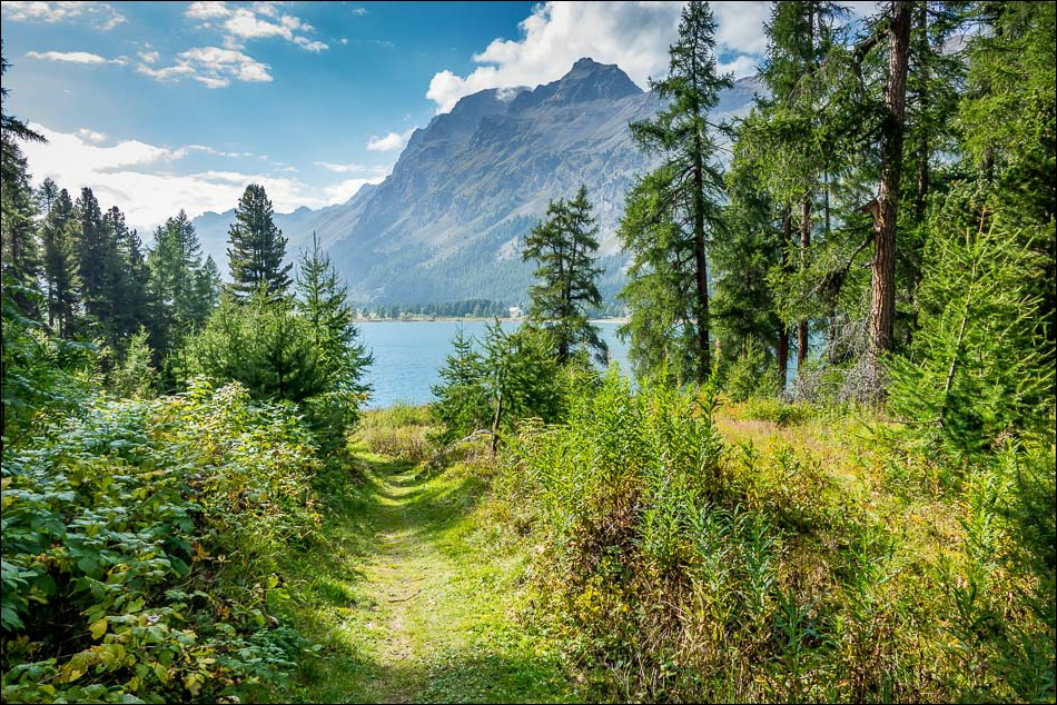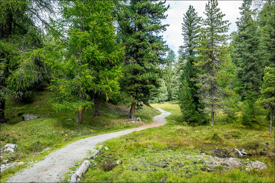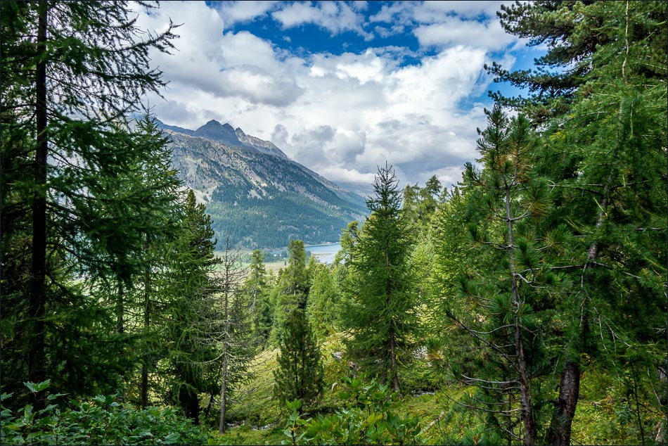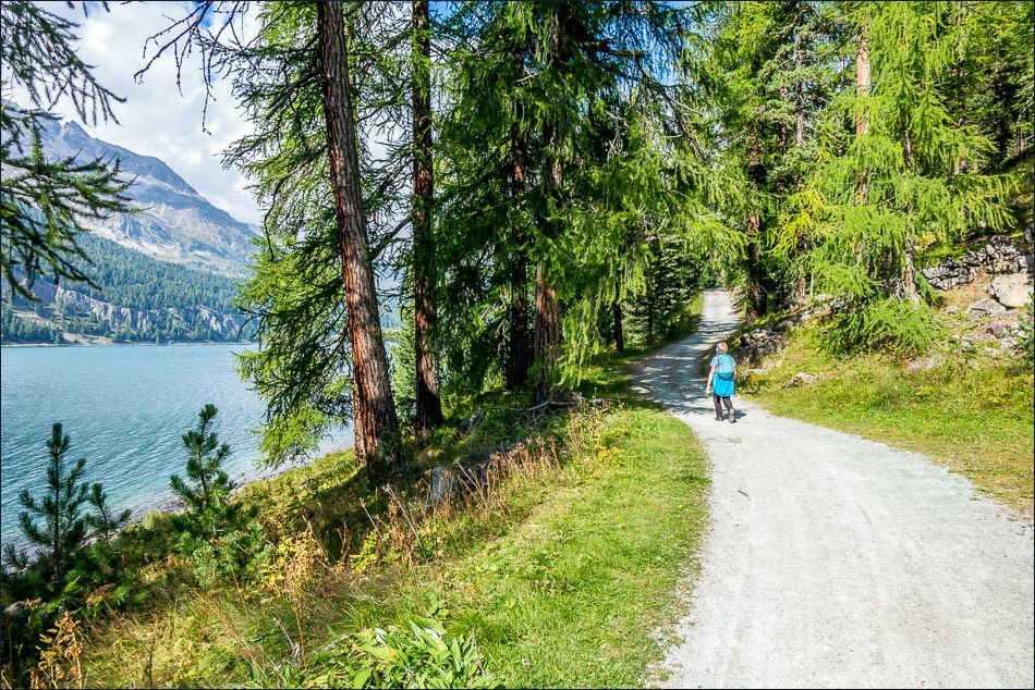 At this point we hadn’t planned where to end the walk, but after studying the map decided to traverse across the foot of the valley, walk above Lej da Silvaplauna (the lake of Silvaplana), then down to the shore, along the lakeside, into Silvaplana and from there we’d catch the bus back to Pontresina. This plan was duly put to the test and was a great success – it was a wonderful walk every step of the way, as the photos will show……