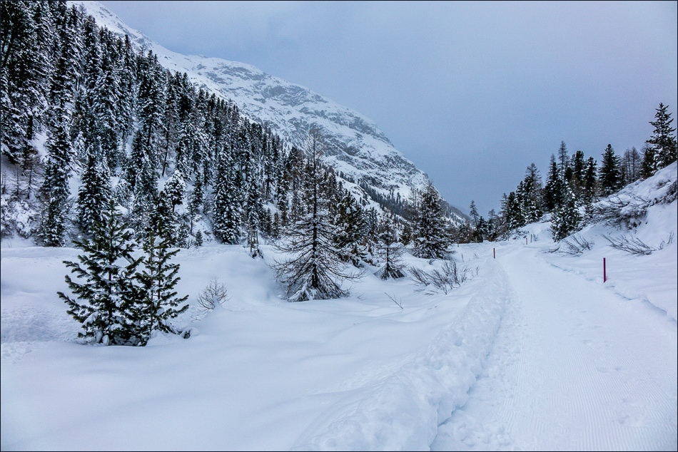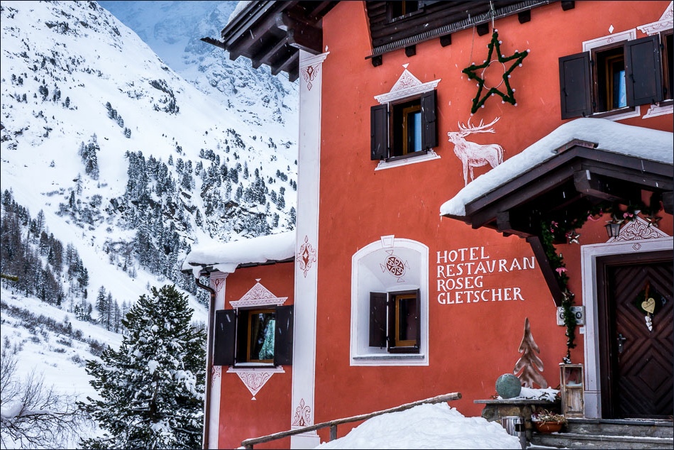 It was a magical journey along the valley as far as the small settlement of Roseg, where we had refreshments at the Hotel Roseg Gletscher before setting off on the hiking trail back down the valley. It was very easy walking and all too soon we were back at the start – it’s not often that a destination is reached with a tinge of regret