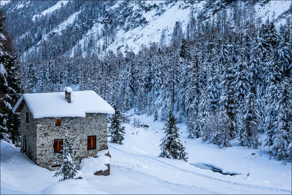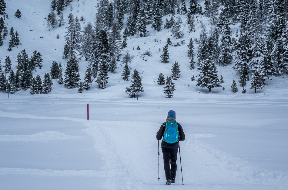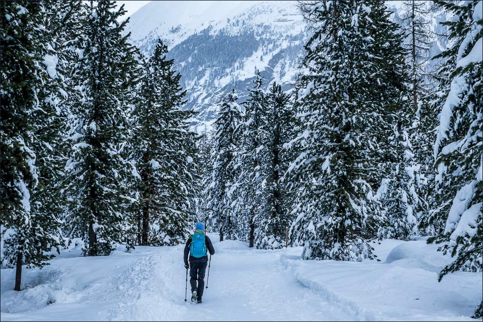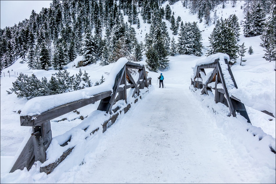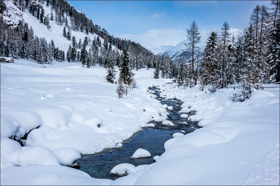The day before the walk we’d booked a horse drawn sleigh from Wohli’s to take us along Val Roseg, and we planned to walk back along the valley, which is downhill all the way