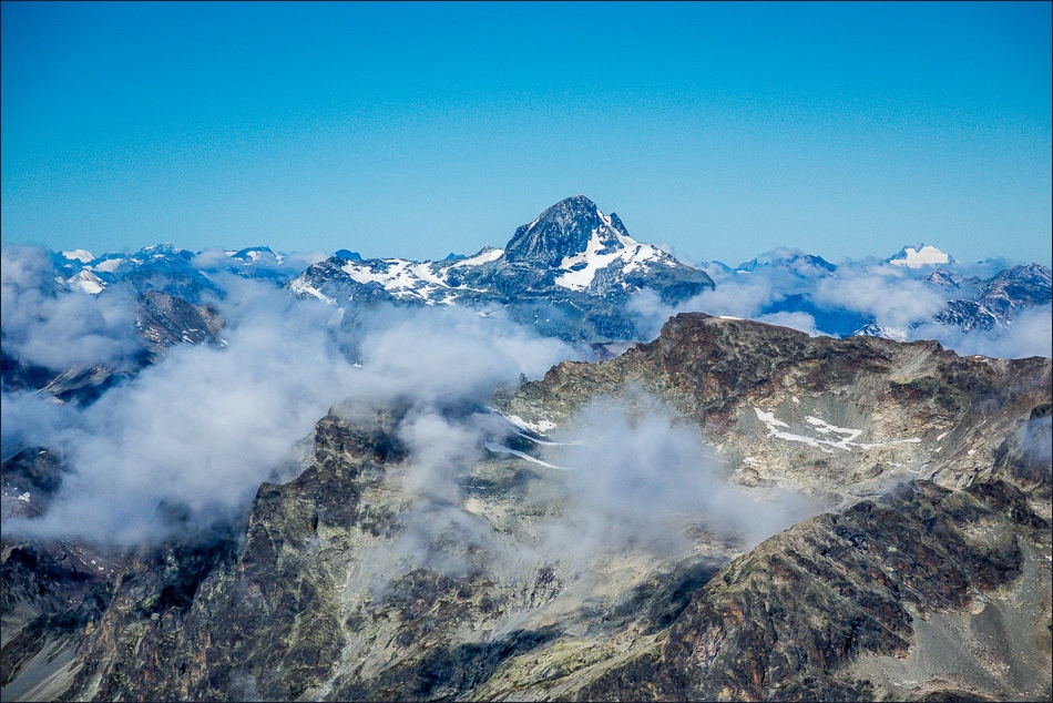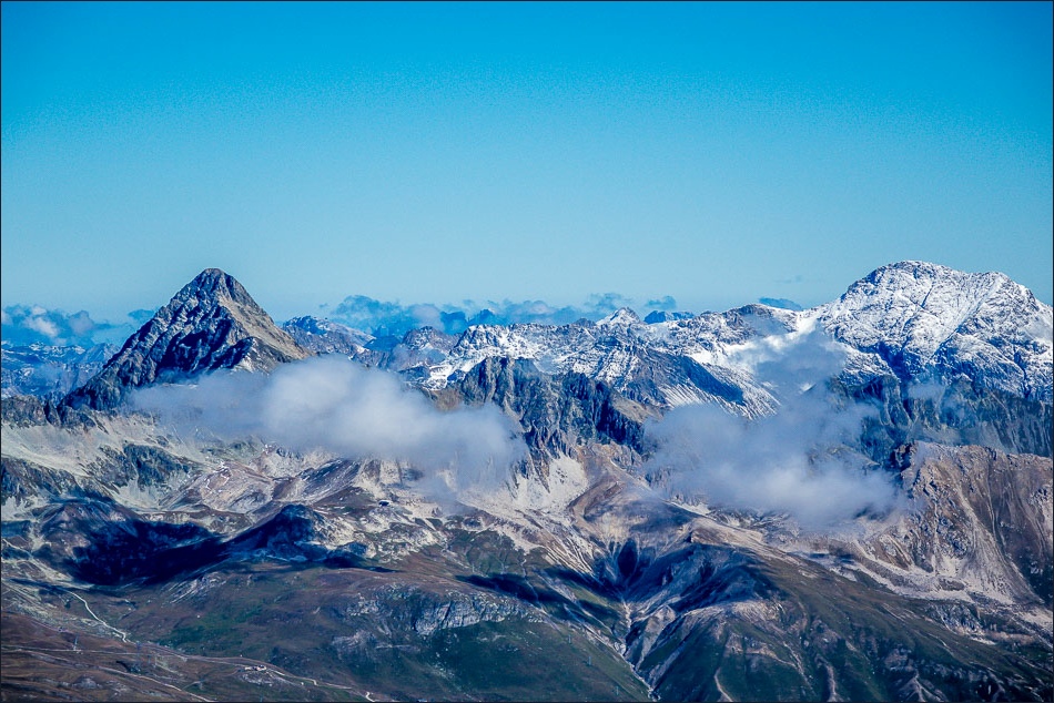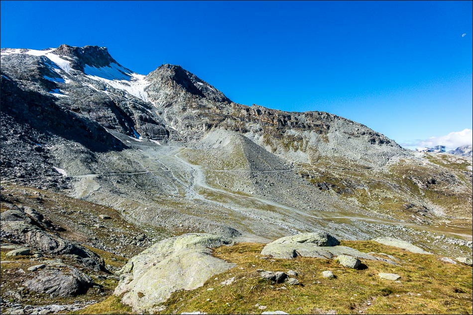 For the second time this year we were staying at the wonderful Hotel Albris in Pontresina, which we’d highly recommend to anyone interested in following these walks. It was a glorious day and full of anticipation we took the bus from outside the hotel to Surlej and then took the cable car to Corvatsch Middle Station. This would be the start of the walk, but first we took another cable car to the top station (10,840 feet above sea level) to admire the incredible views