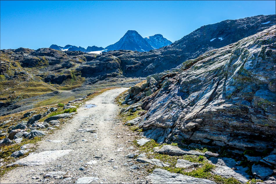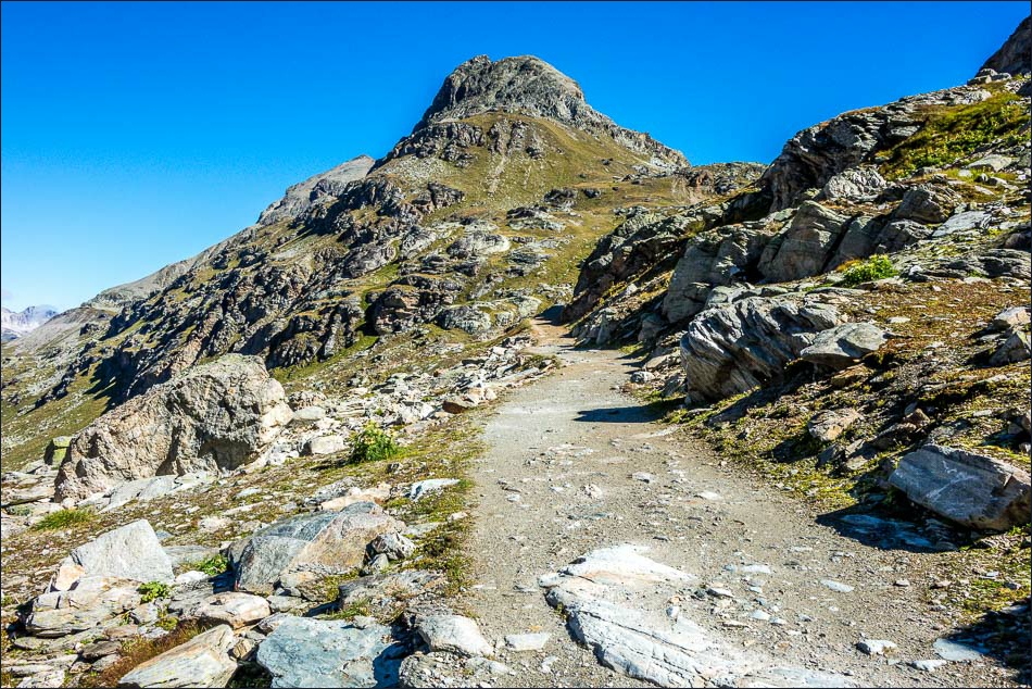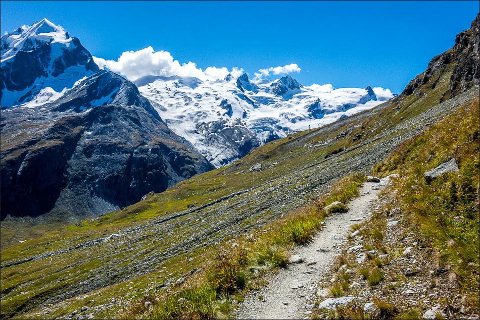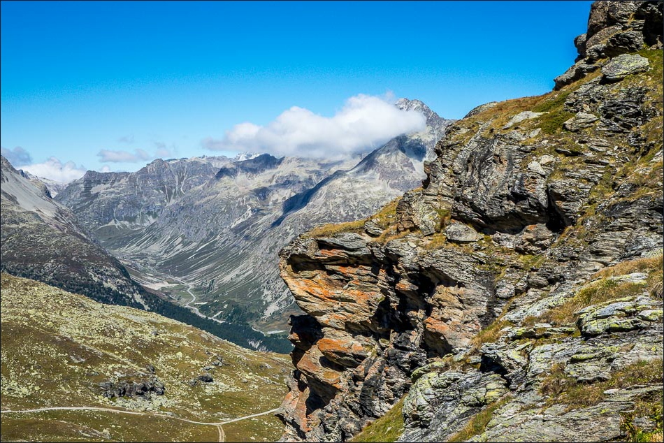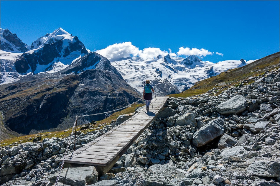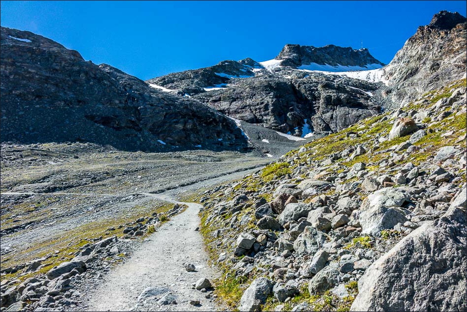 We returned to the middle station on Corvatsch Murtel to start the walk at 8,865 feet. The mountain scenery was awesome and we felt privileged to be up here on such a day