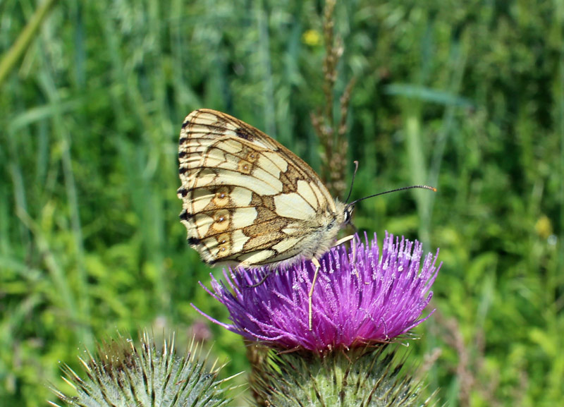 We parked near Farberry Garth Farm and walked along a lovely path through Great Dug Dale in the direction of Warter. It was another hot sunny day with clear blue skies. Along the path we saw thousands of butterflies which rose in clouds as we approached them. They’d been attracted by the thistles and other wild flowers along the way